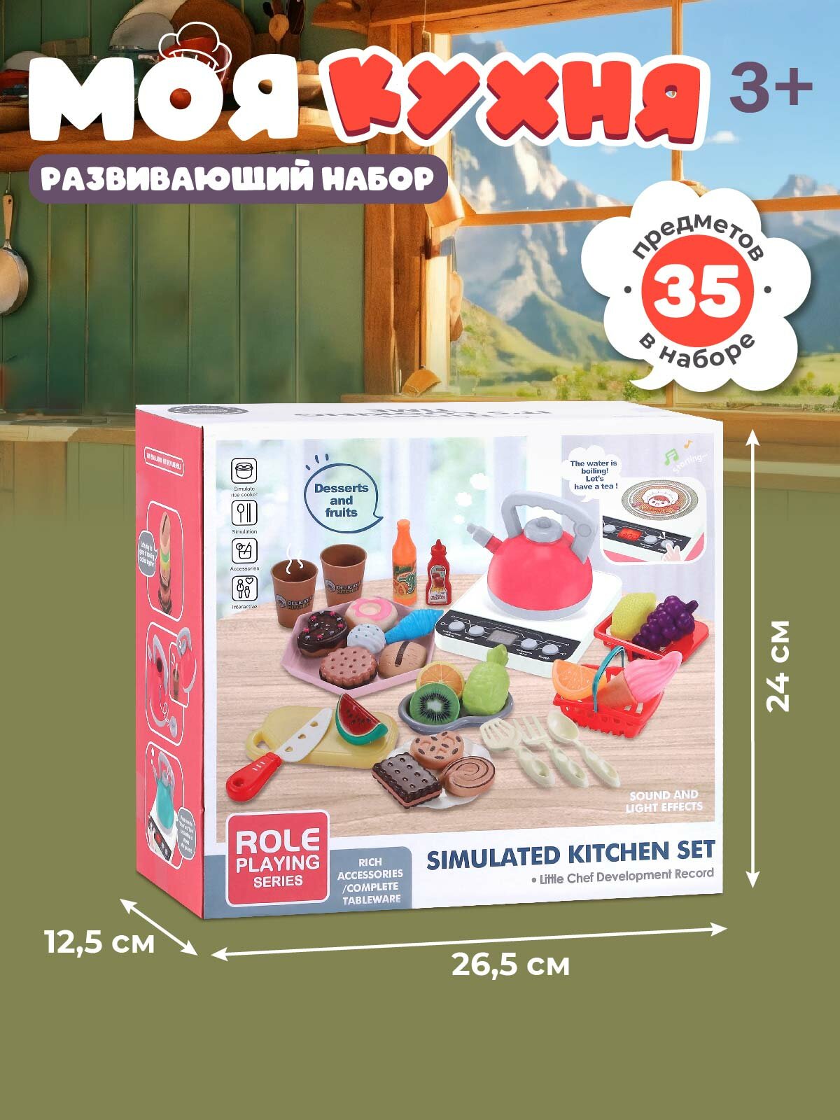 Набор детской игрушечной посуды с плитой, чайником, игрушечная еда, кухонные принадлежности, JB0213041 интересное: