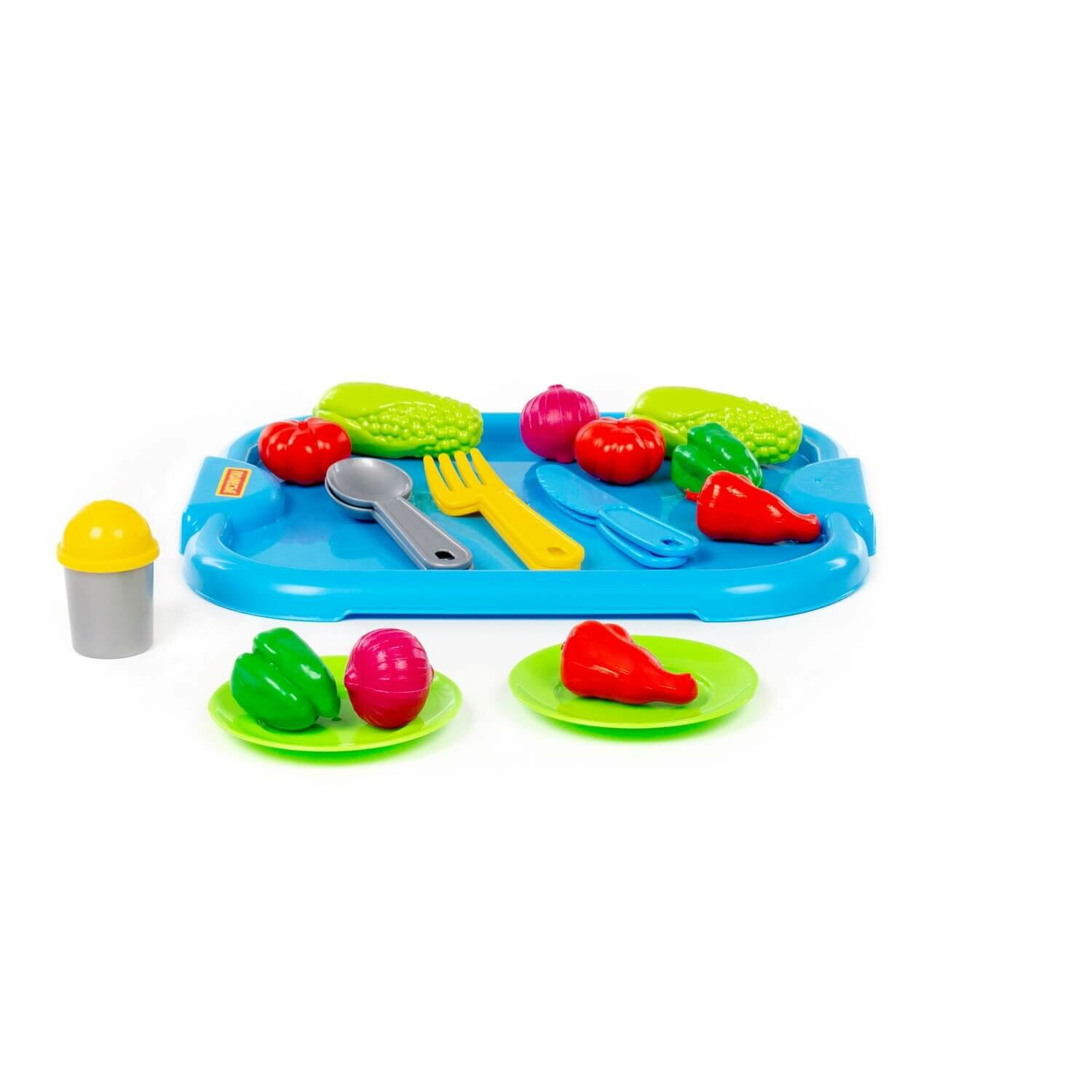 Купить Набор детской посуды с голубым подносом и набором продуктов (19 элементов) (в сеточке)