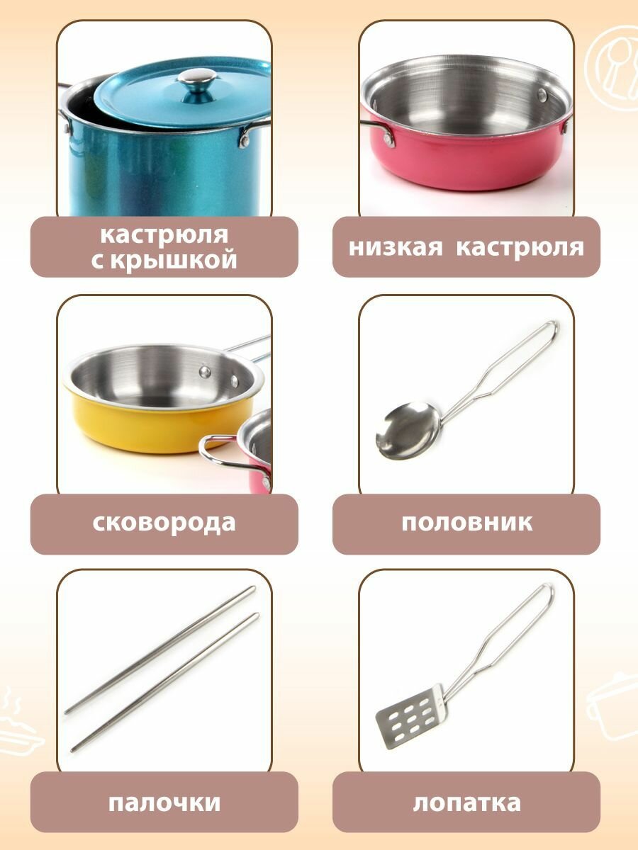 Купить Детский набор игрушечной металлической посуды, 13 предметов, Veld Co / Кухонный игровой набор для детей