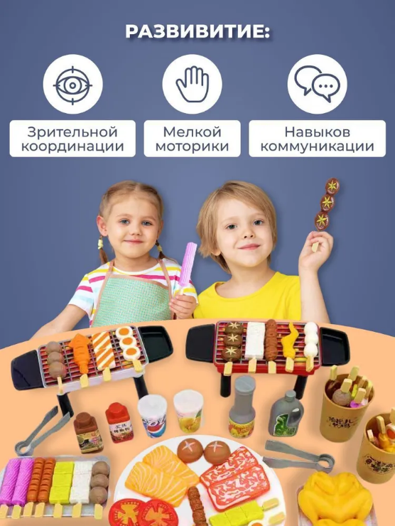 Игровой набор барбекю TrendToys и продукты игрушечные 80 предметов интересное: