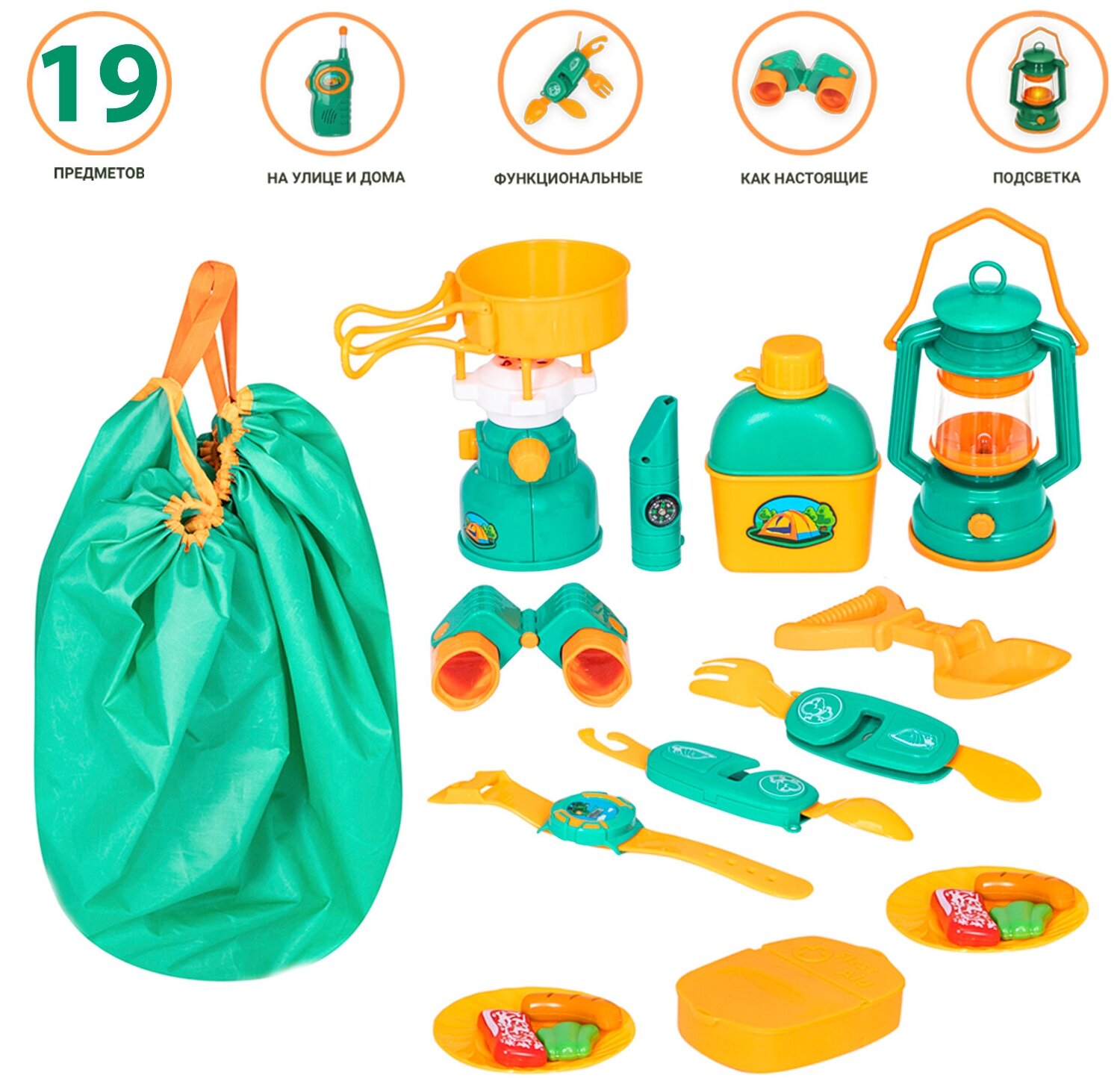 Детская посуда игрушка "Набор Туриста" с набором для пикника 19 предметов G209-014 интересное: