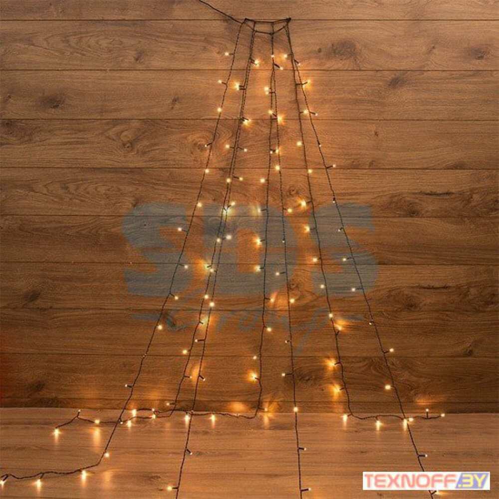 Елочная гирлянда с кольцом NEON-NIGHT 7 нитей по 1,8 метра, 8 режимов, 126 тепло-белых светодиодов, тёмно-зеленый провод