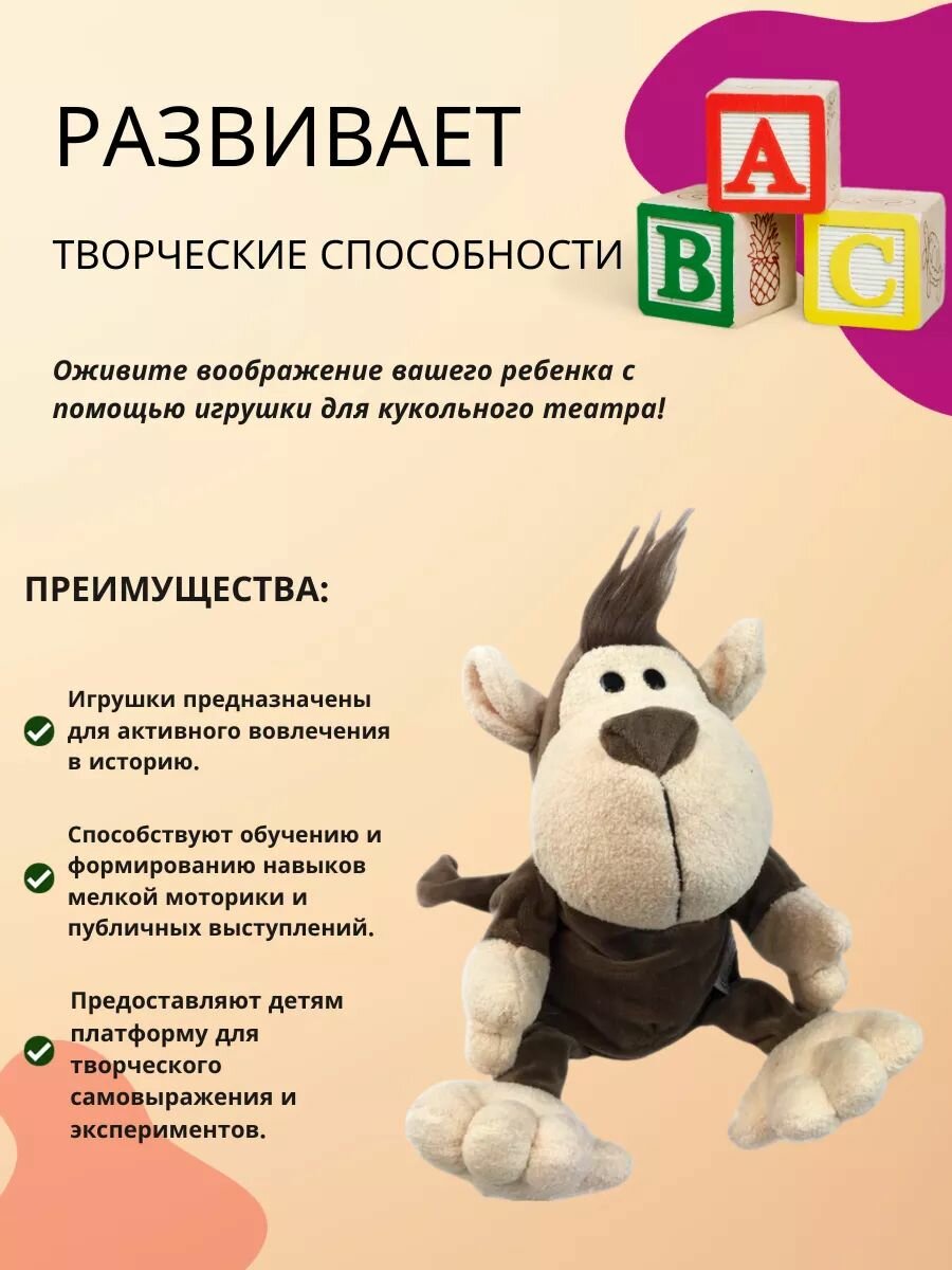 Купить Кукольный театр на руку Обезьяна / кукла перчатка для детского домашнего кукольного театра
