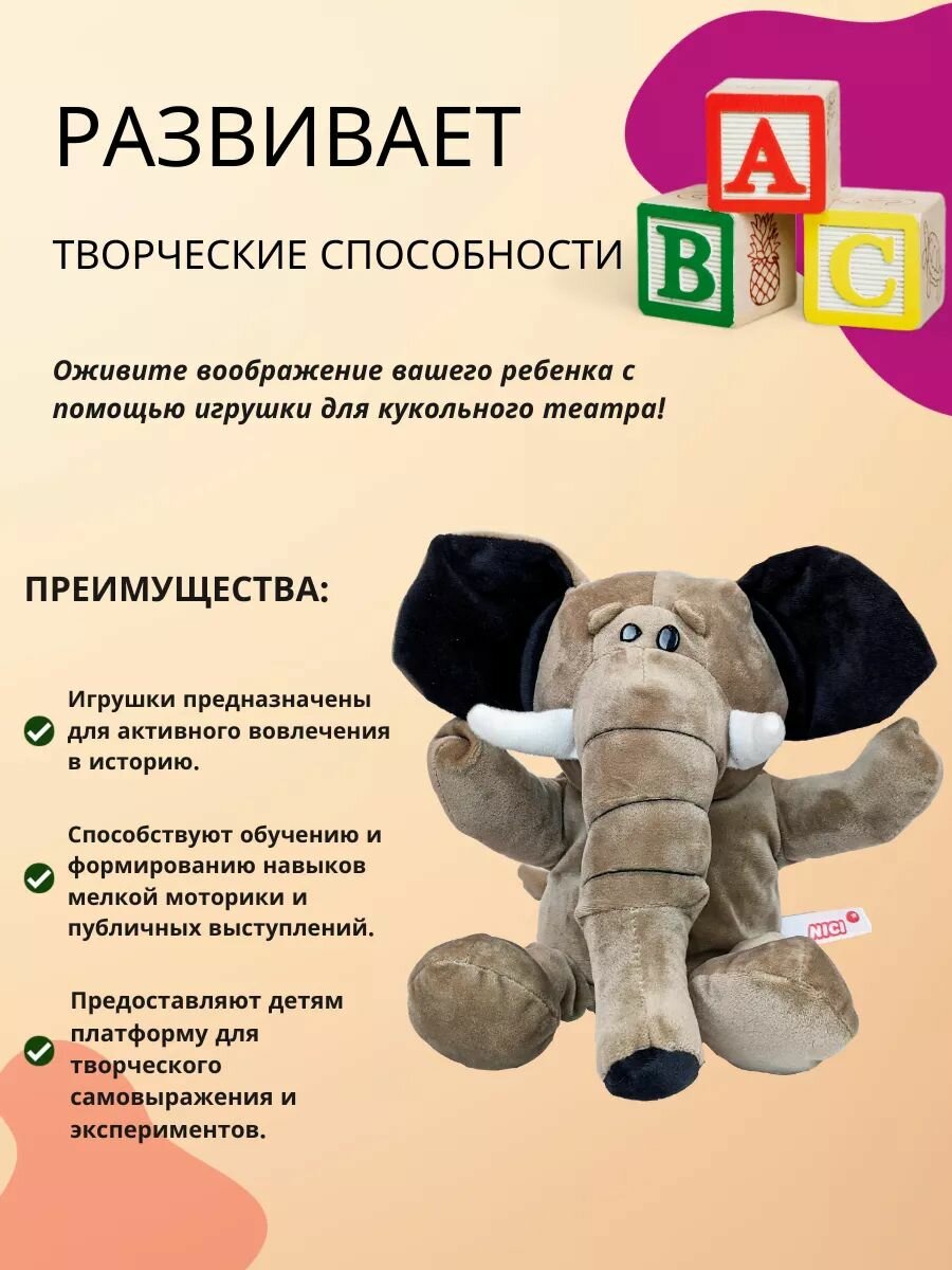 Купить Кукольный театр на руку Слон / Игрушка перчатка мягкая для детского домашнего театра