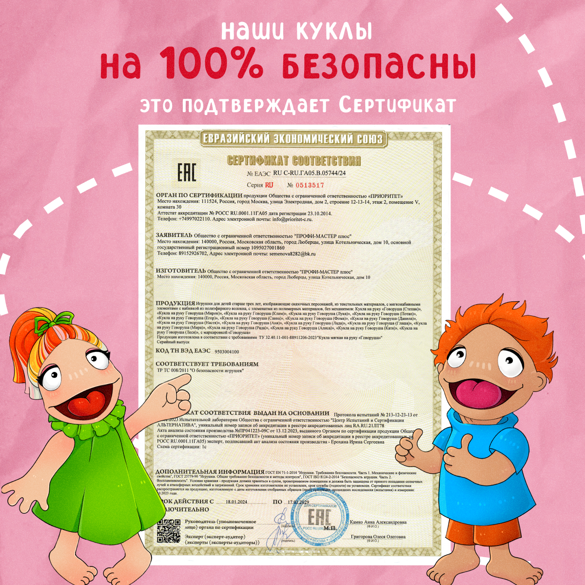 Игрушка мягкая антистресс, куклы на руку/марионетки, от 3 лет