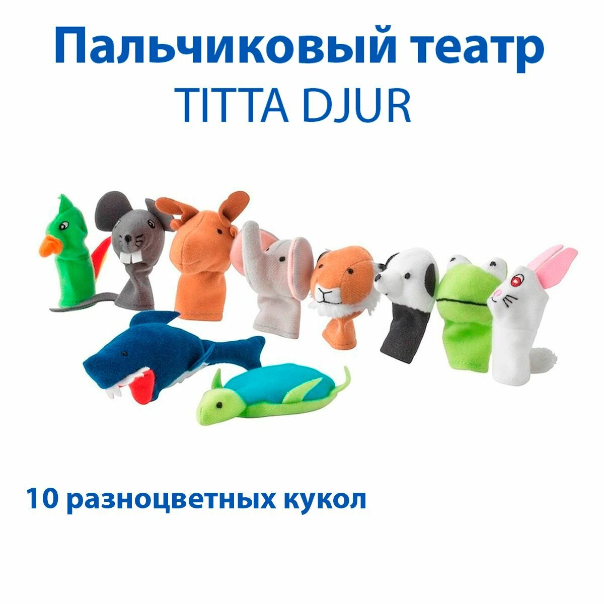 Пальчиковый театр IKEA - TITTA DJUR (титта дьюр), 10 разноцветных кукол в упаковке интересное:
