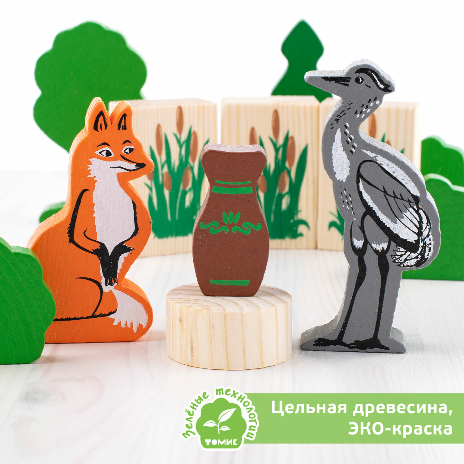 Купить Конструктор развивающий деревянный детская сказка "Лиса и журавль" Томик 14 дет. 4534-10