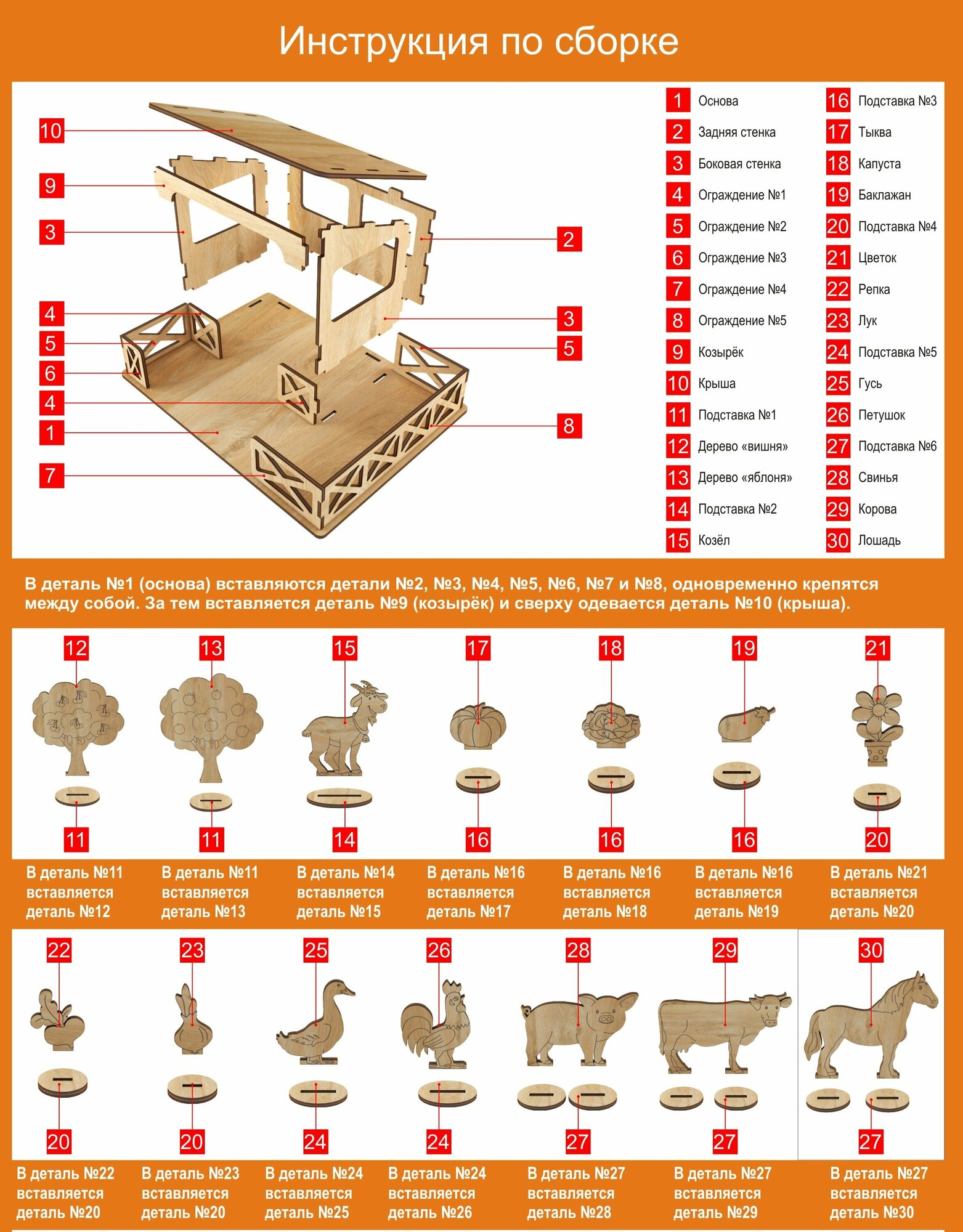 Ферма. Набор деревянных фигурок 6 животных и 8 растений, 30*22*16 см. интересное: