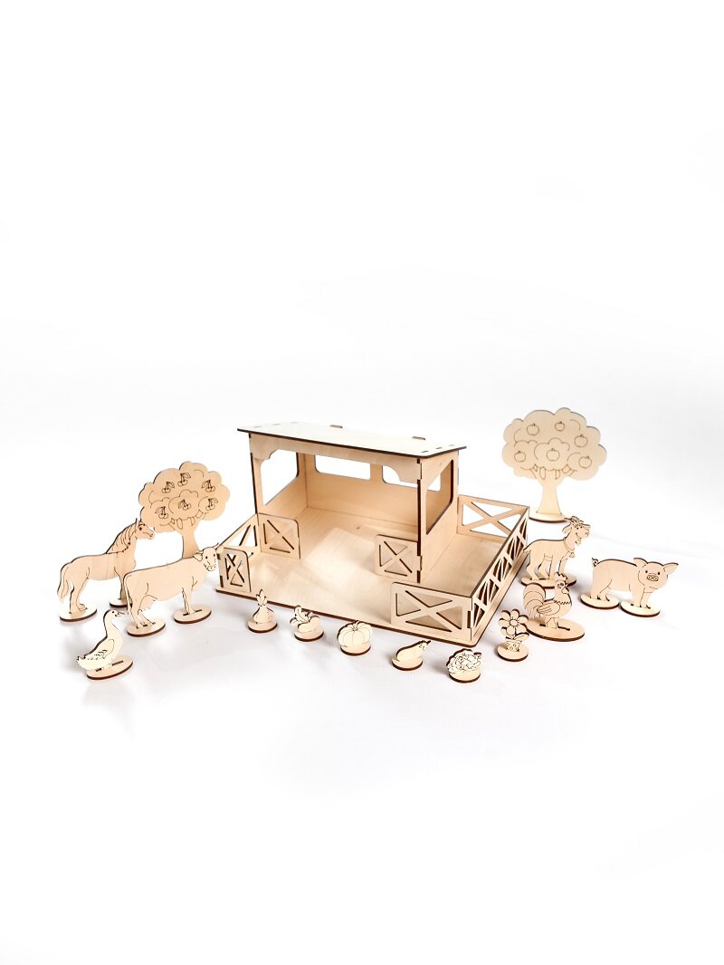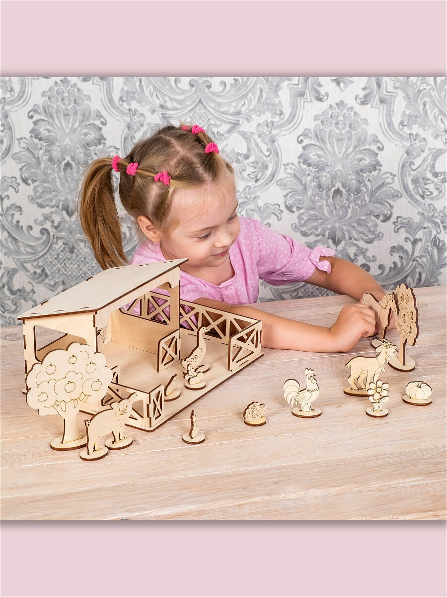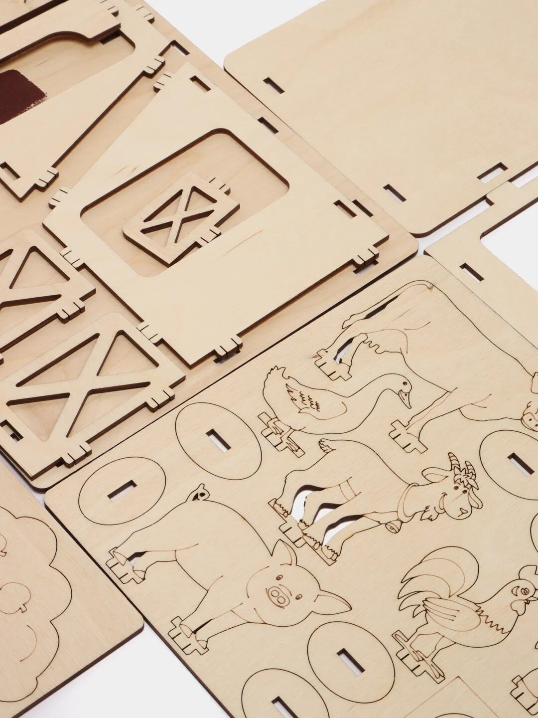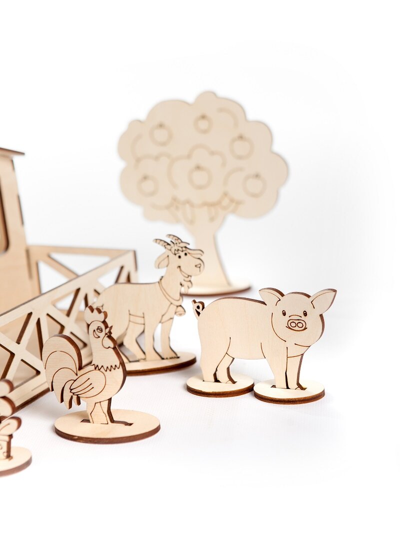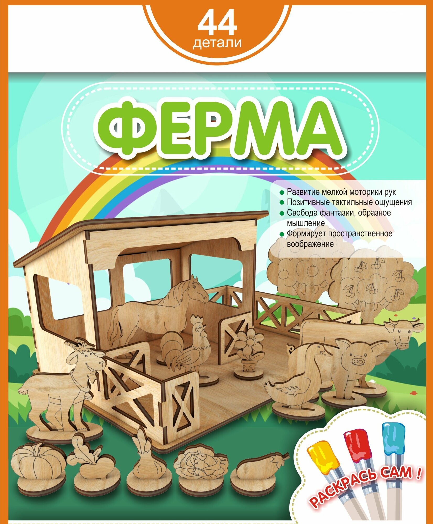 Купить Ферма. Набор деревянных фигурок 6 животных и 8 растений, 30*22*16 см.