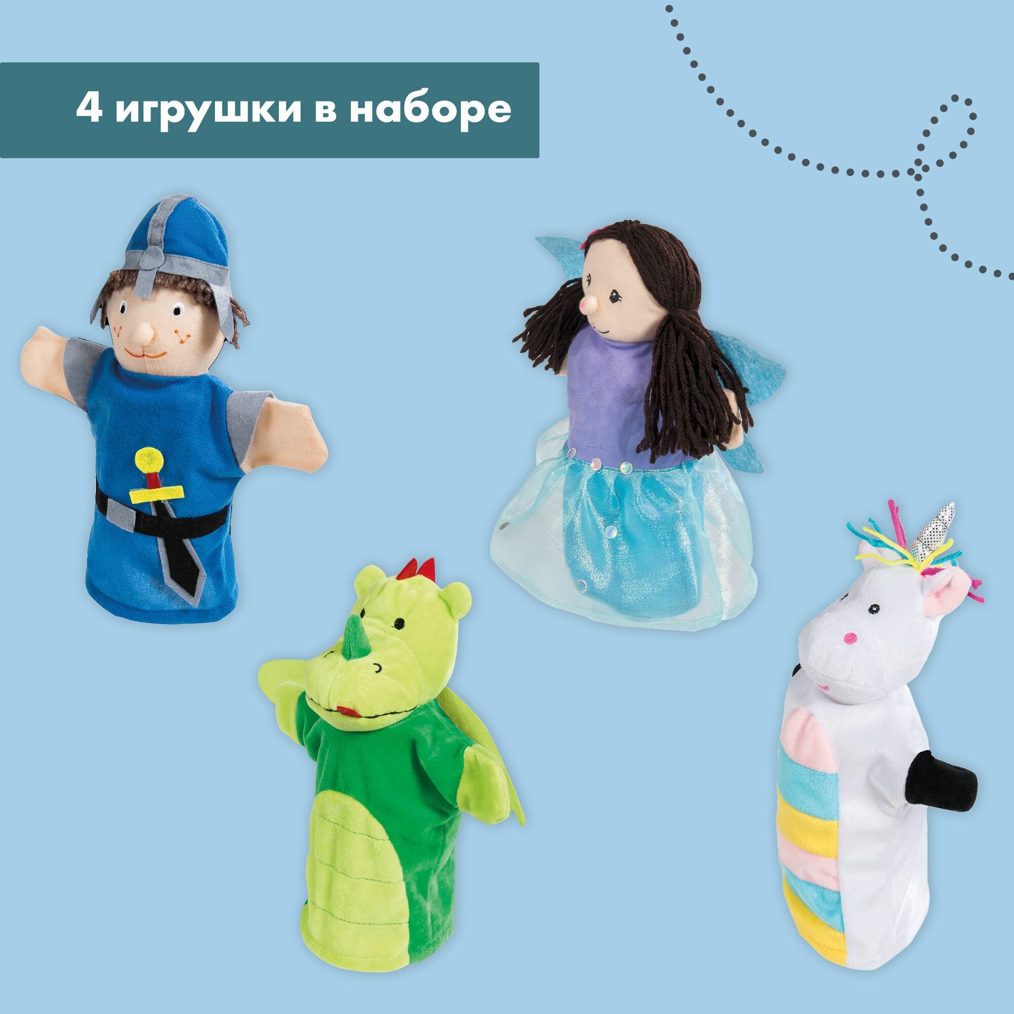 Набор кукол на руку для детского театра Roba, 4 игрушки: фея, единорог, рыцарь, дракон интересное:
