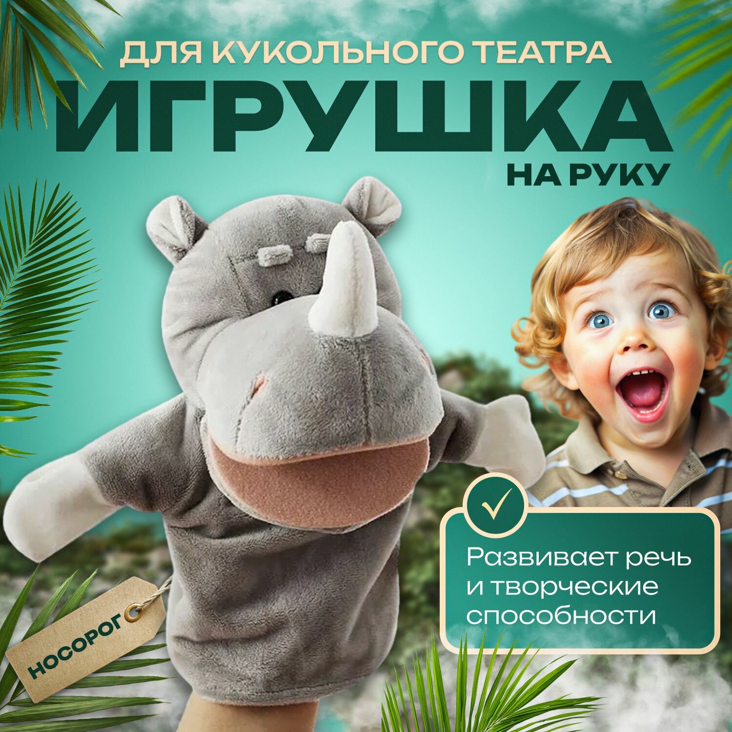 Купить Мягкая игрушка перчатка на руку Носорог с открывающимся ртом