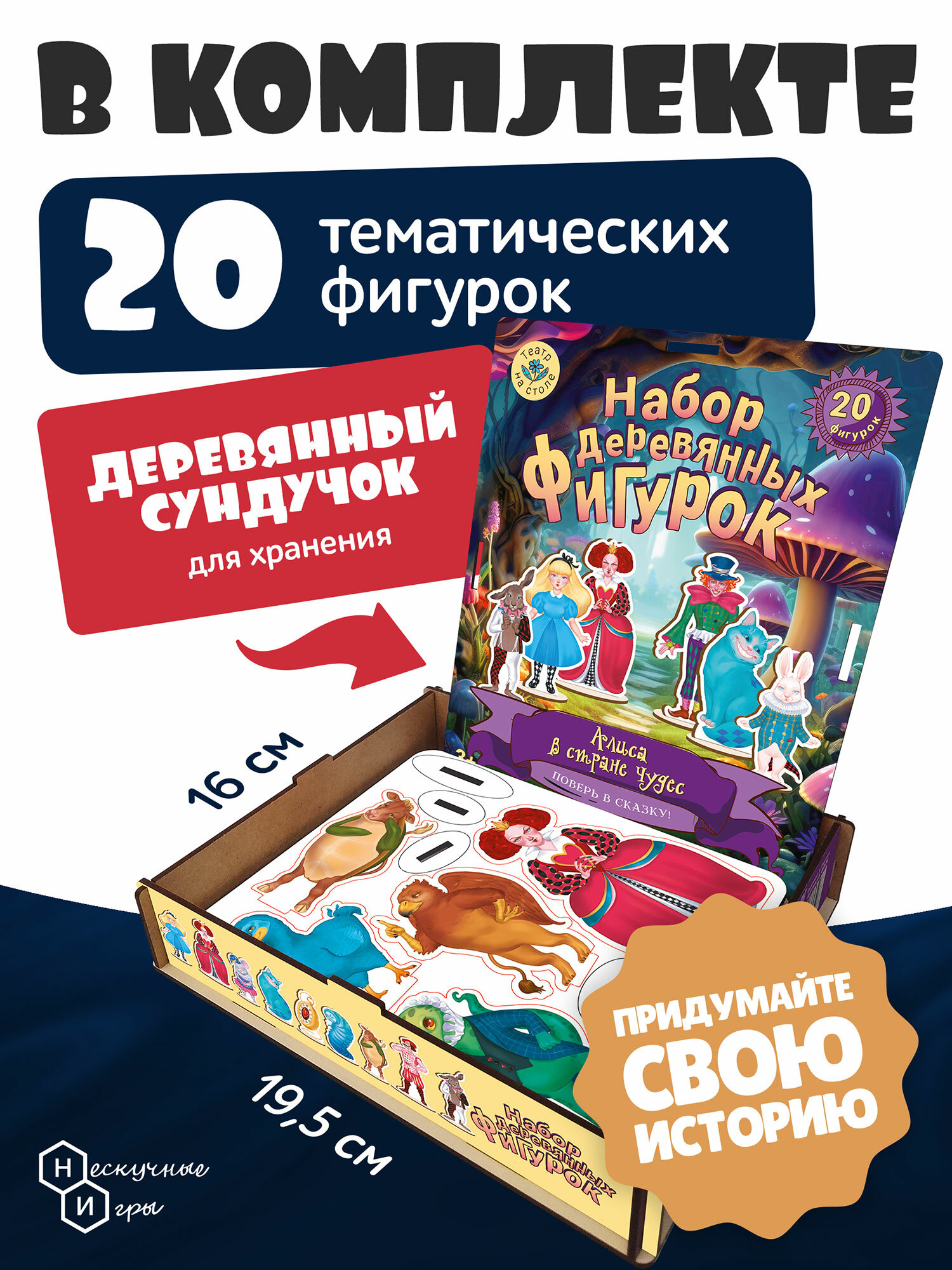 Театр на столе. Набор деревянных фигурок "Алиса в стране чудес" артикул 8826 интересное: