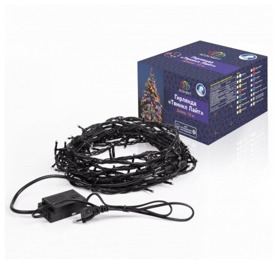 Купить Гирлянда "Твинкл Лайт" 10 м, черный ПВХ, 100 диодов, цвет красный Артикул 303-132