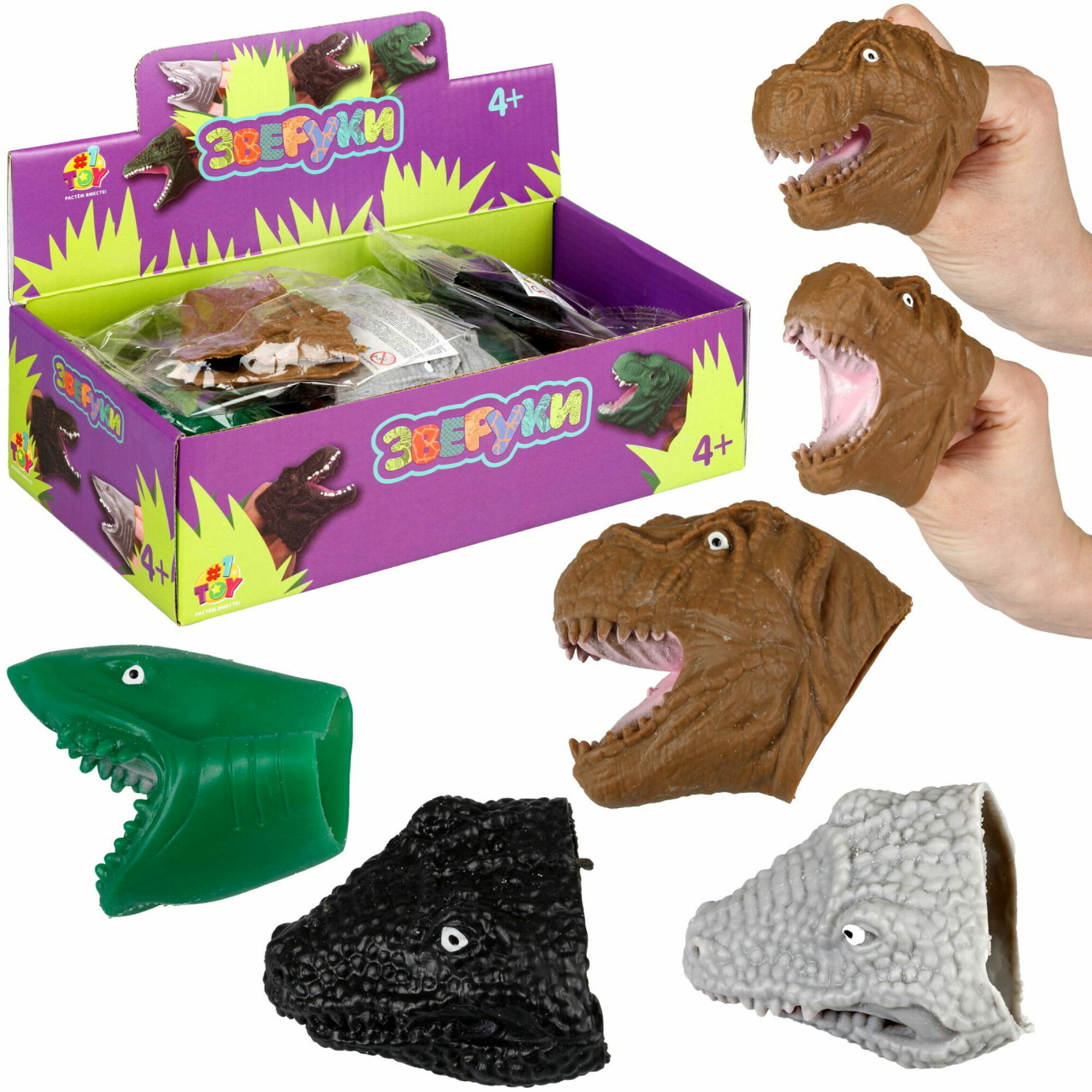 Купить Игрушка на руку 1toy "Зверуки" мини динозавр на руку в ассортименте 1шт