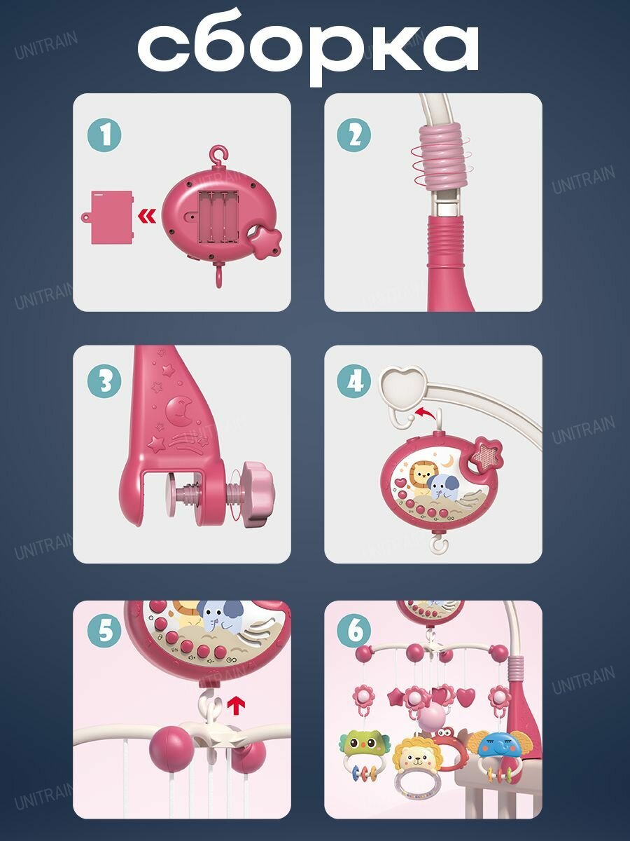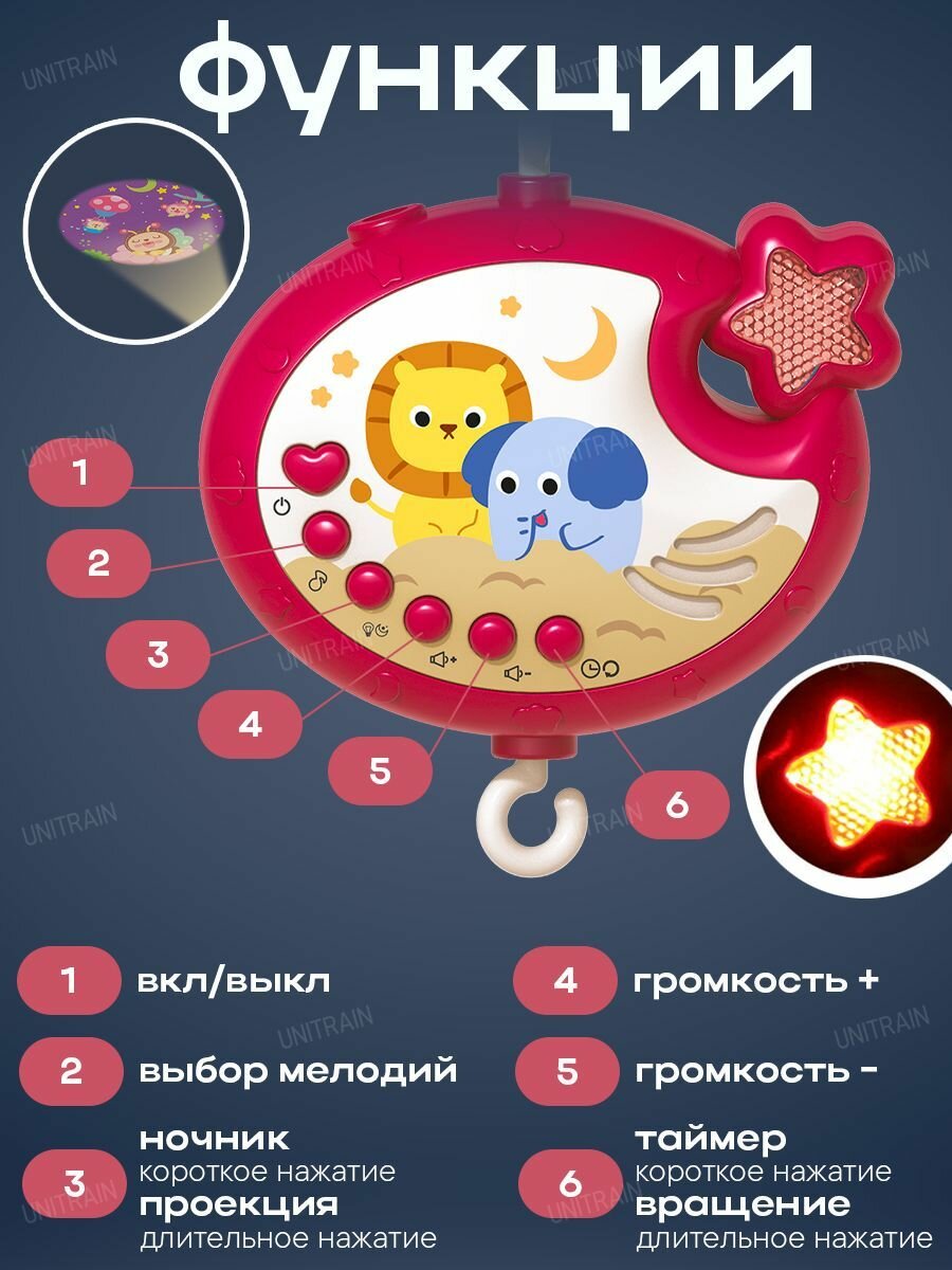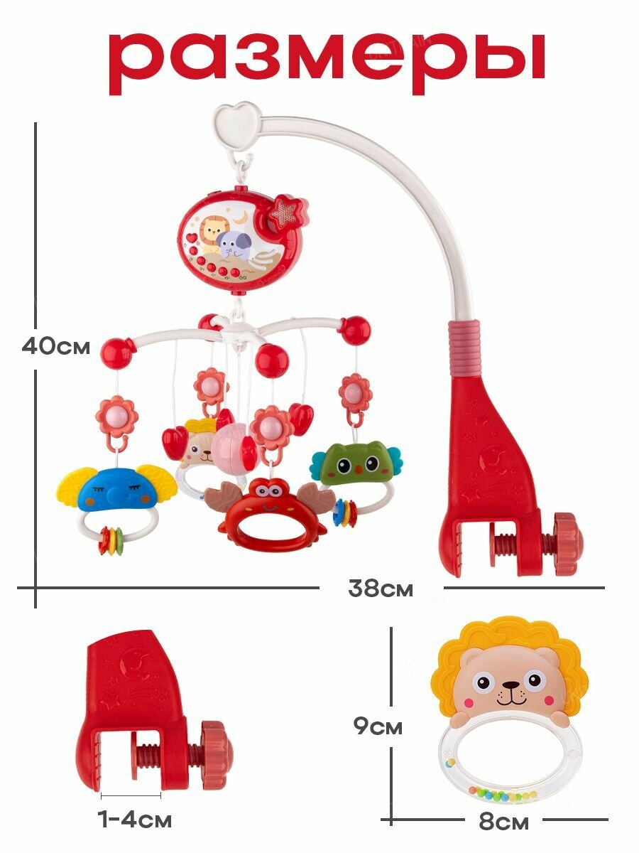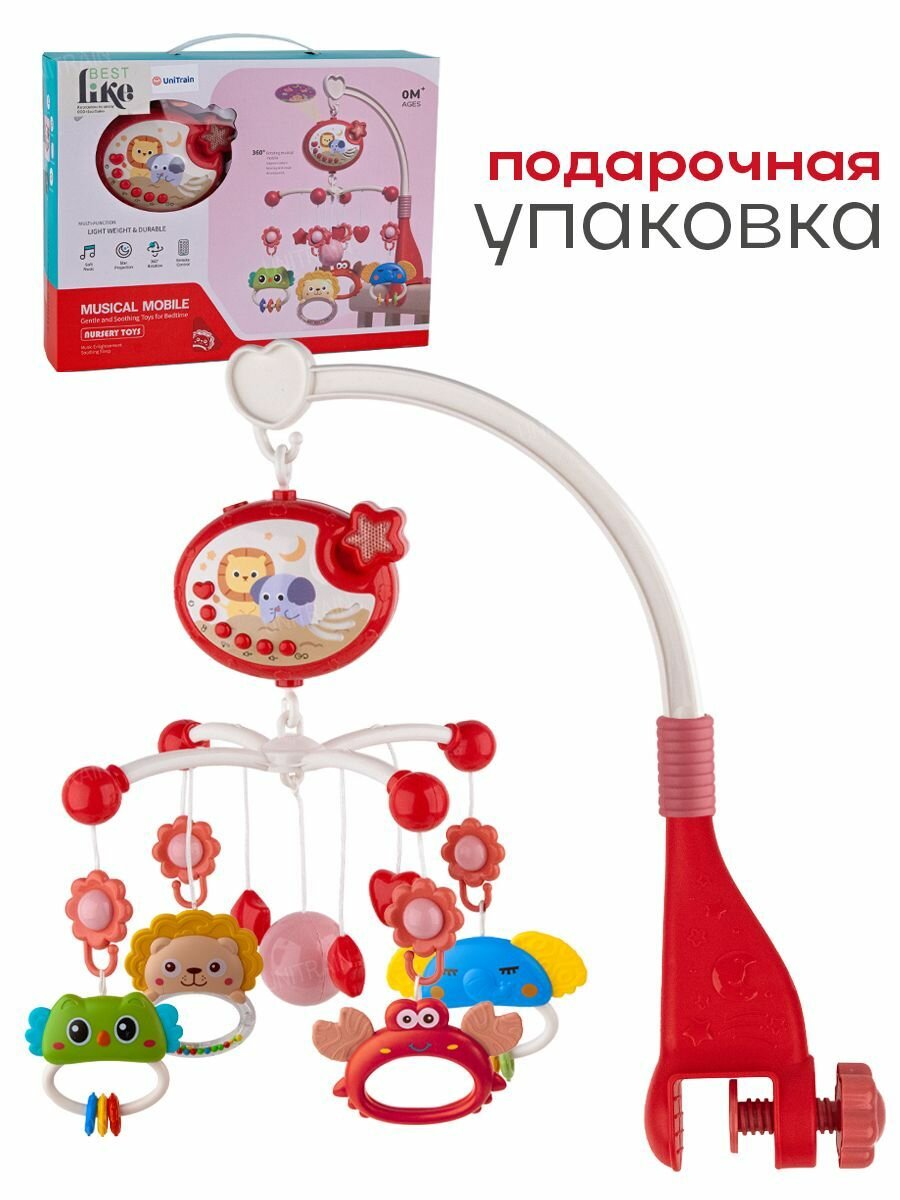 Мобиль на кроватку для новорожденных, музыкальный, с проектором и ночником, красный интересное: