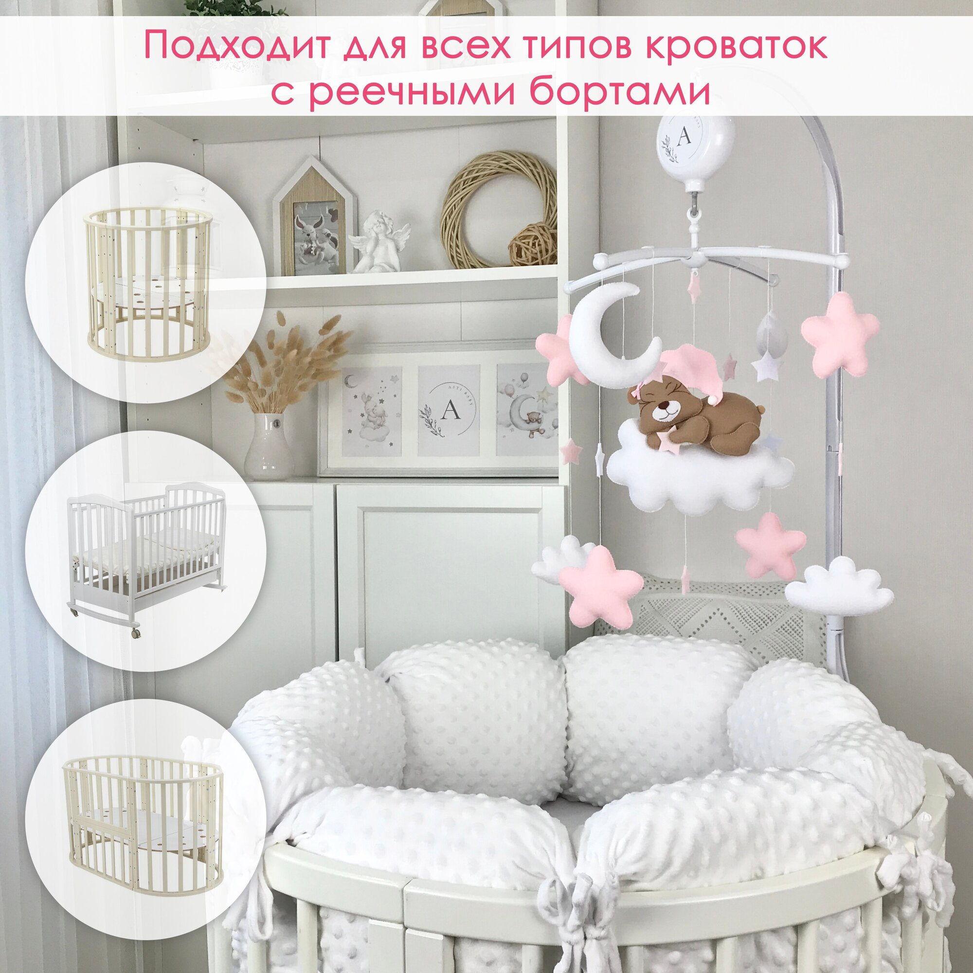 Мобиль на кроватку из фетра "Сонный мишка" AstiBaby Розовый интересное: