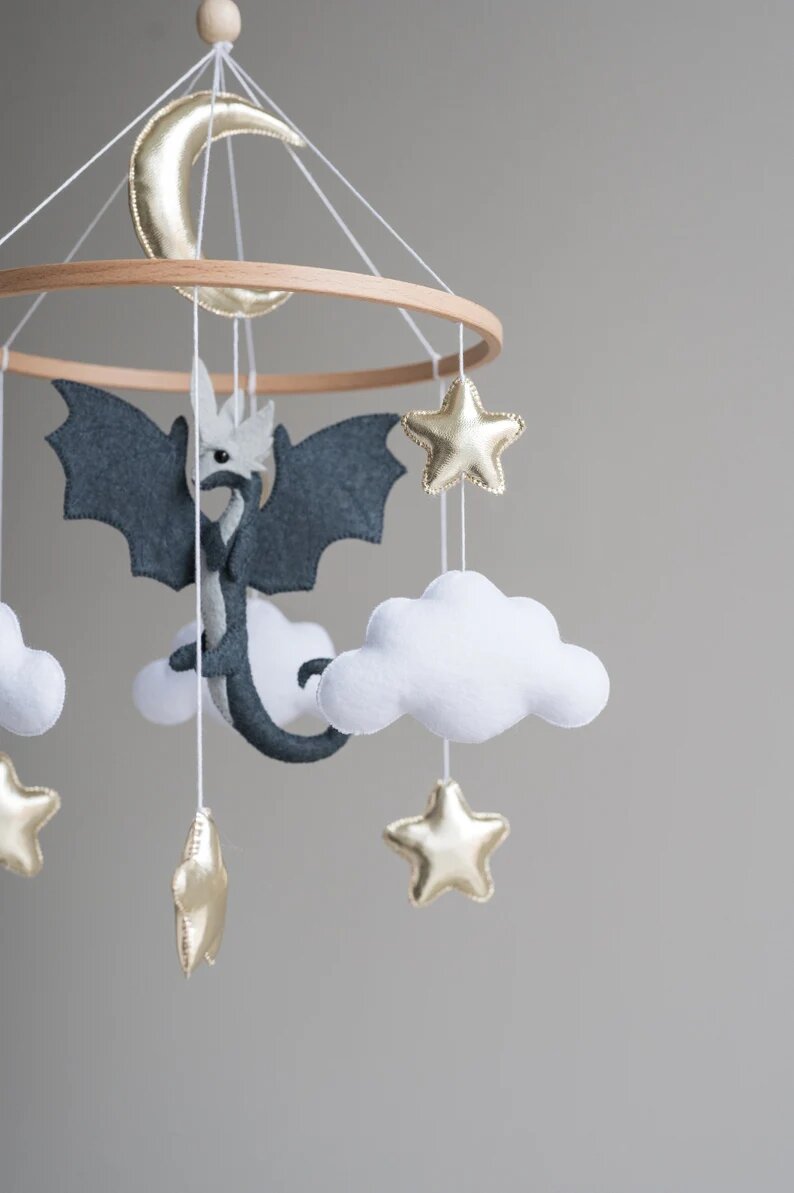 Купить Мобиль в кроватку 35 мелодий из фетра "Мать Дракона" (Серый))