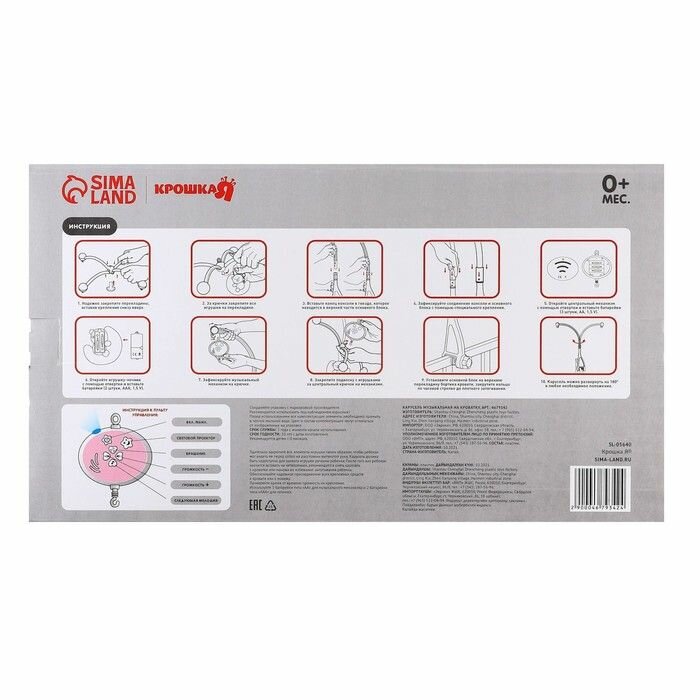 Мобиль музыкальный «Совушка», работает от батареек