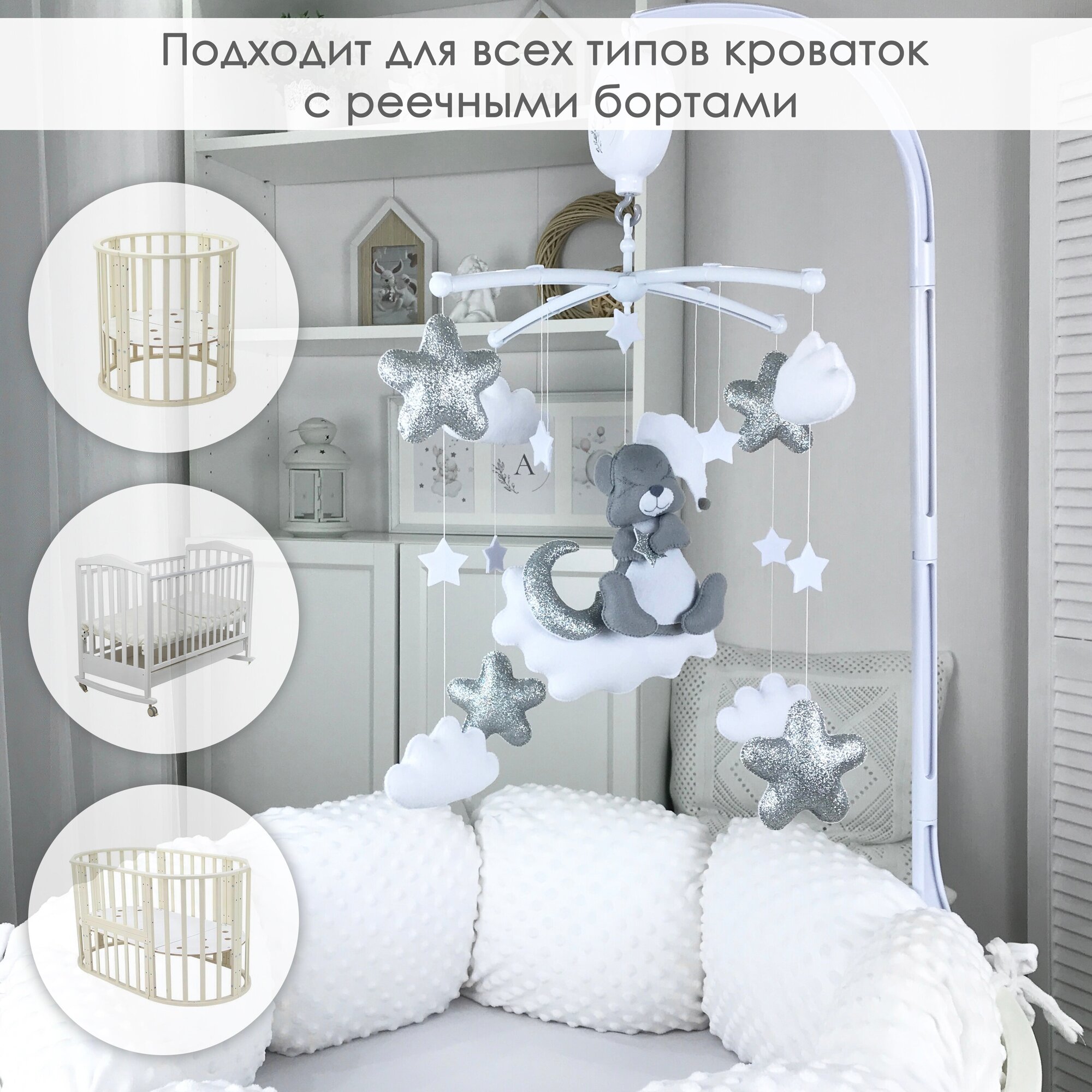 Мобиль на кроватку из фетра "Мишка на облаке" AstiBaby Серебристый интересное: