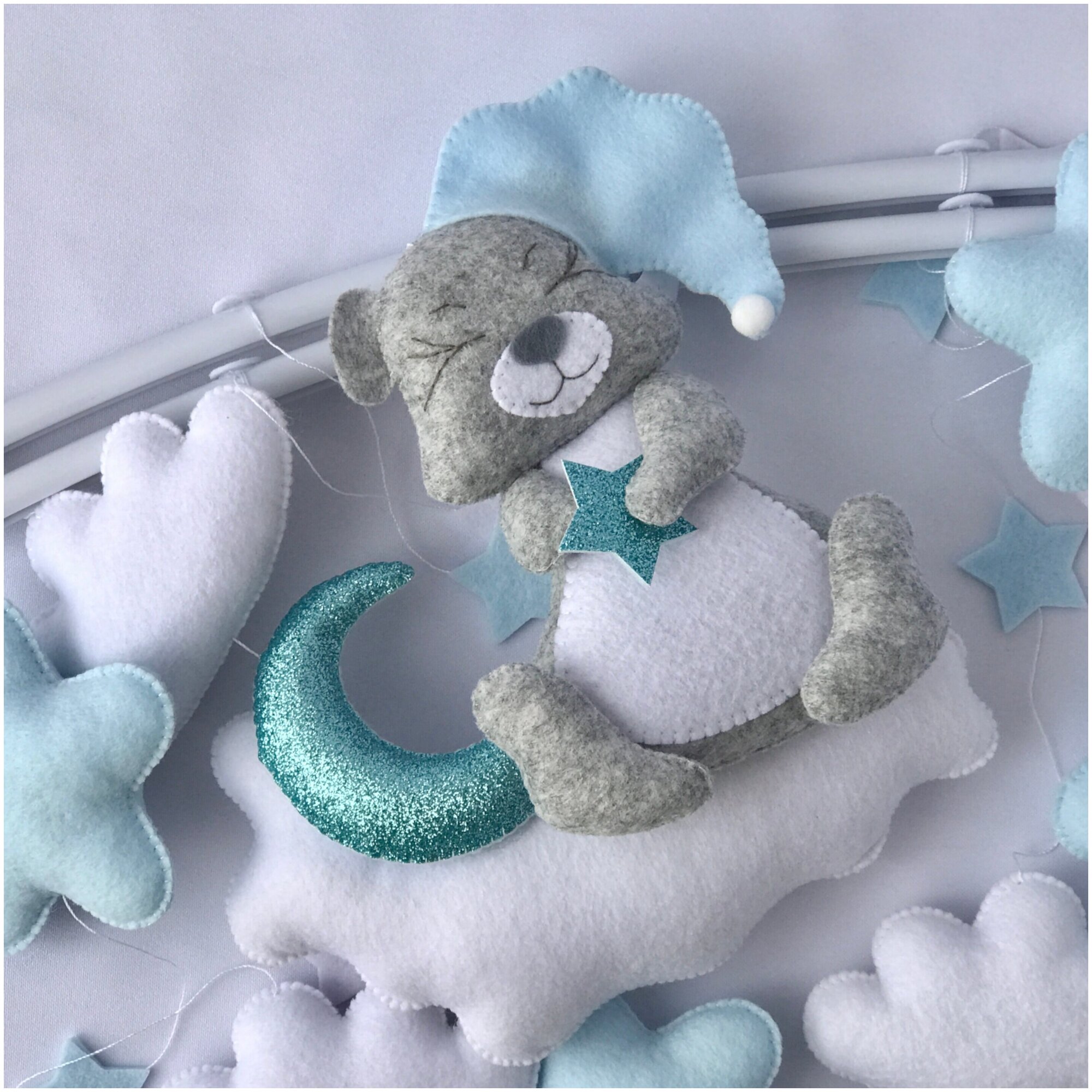 Мобиль на кроватку из фетра "Мишка на облаке" AstiBaby Голубой интересное: