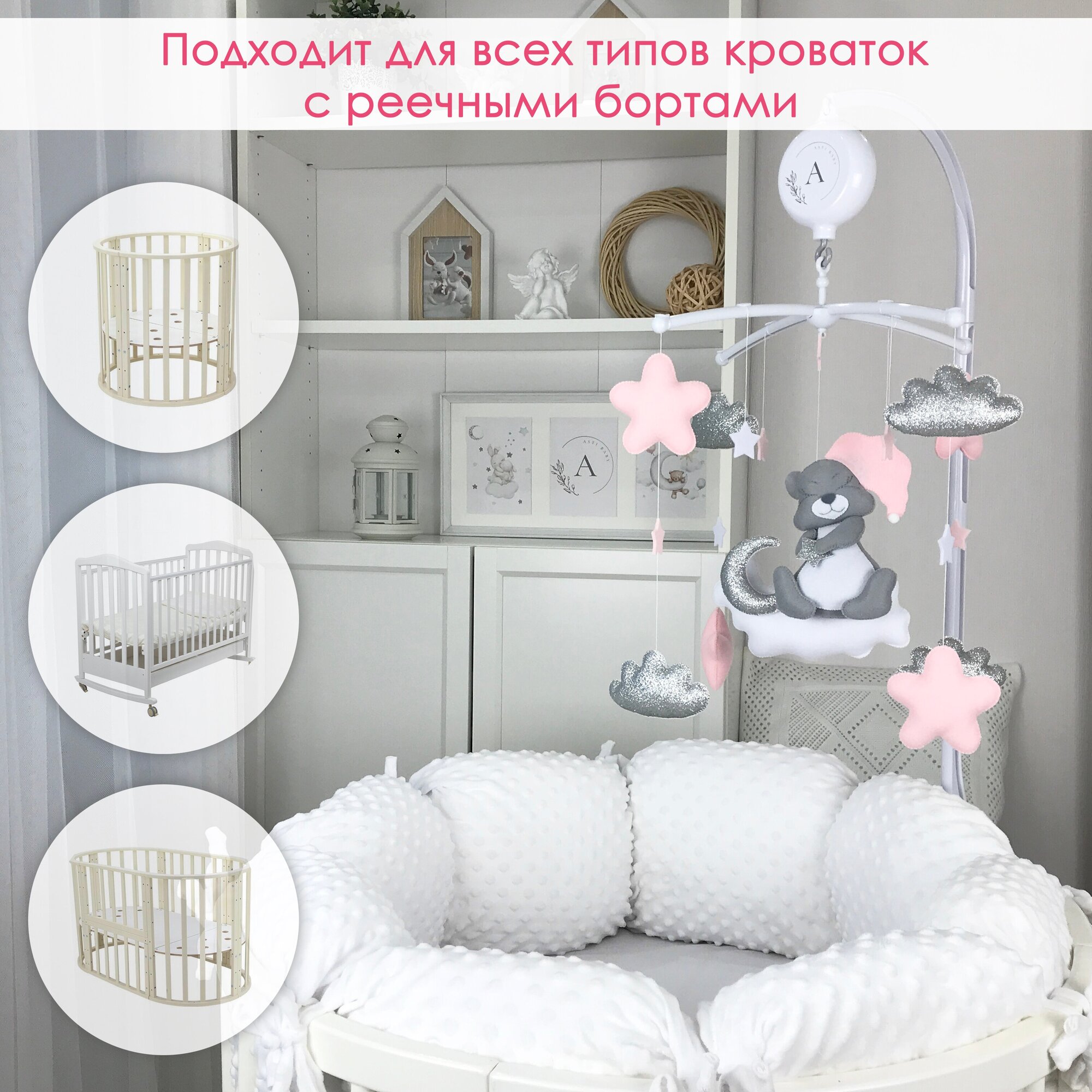Мобиль на кроватку из фетра "Мишка на облаке" AstiBaby Розовый интересное:
