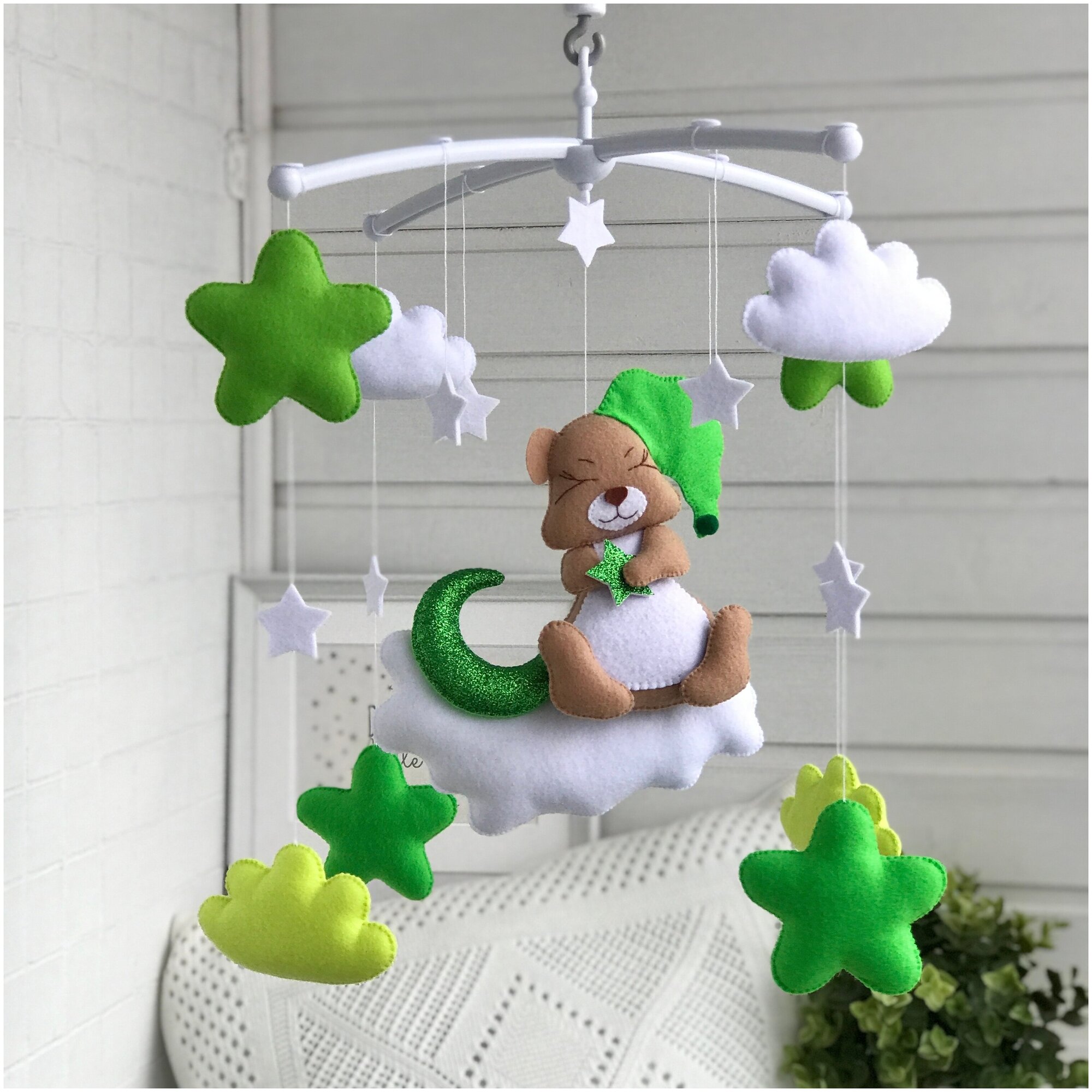 Мобиль на кроватку из фетра "Мишка на облаке" AstiBaby Зеленый интересное: