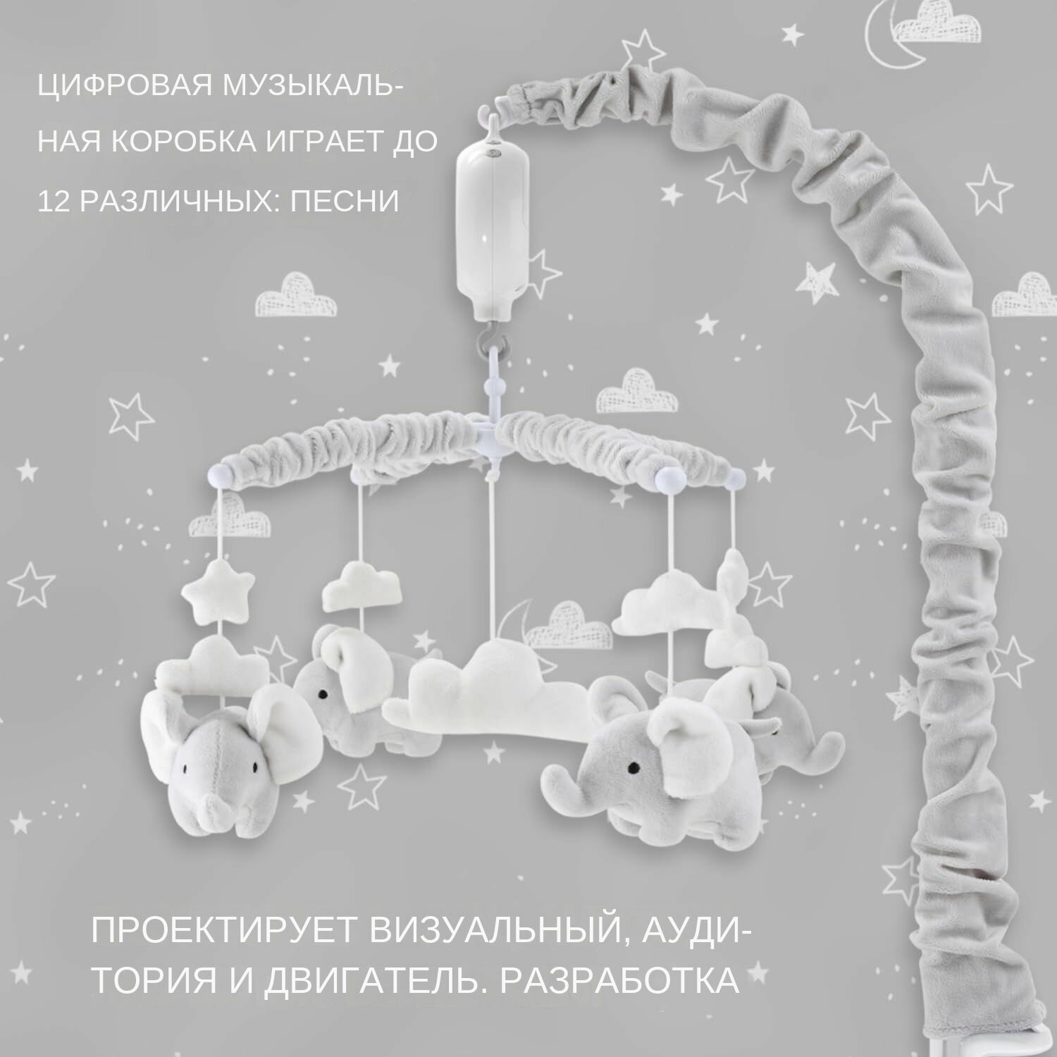 Мобиль музыкальный для детской кроватки "Темная луна"