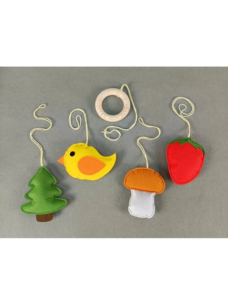 Мобиль деревянный с игрушками из фетра интересное: