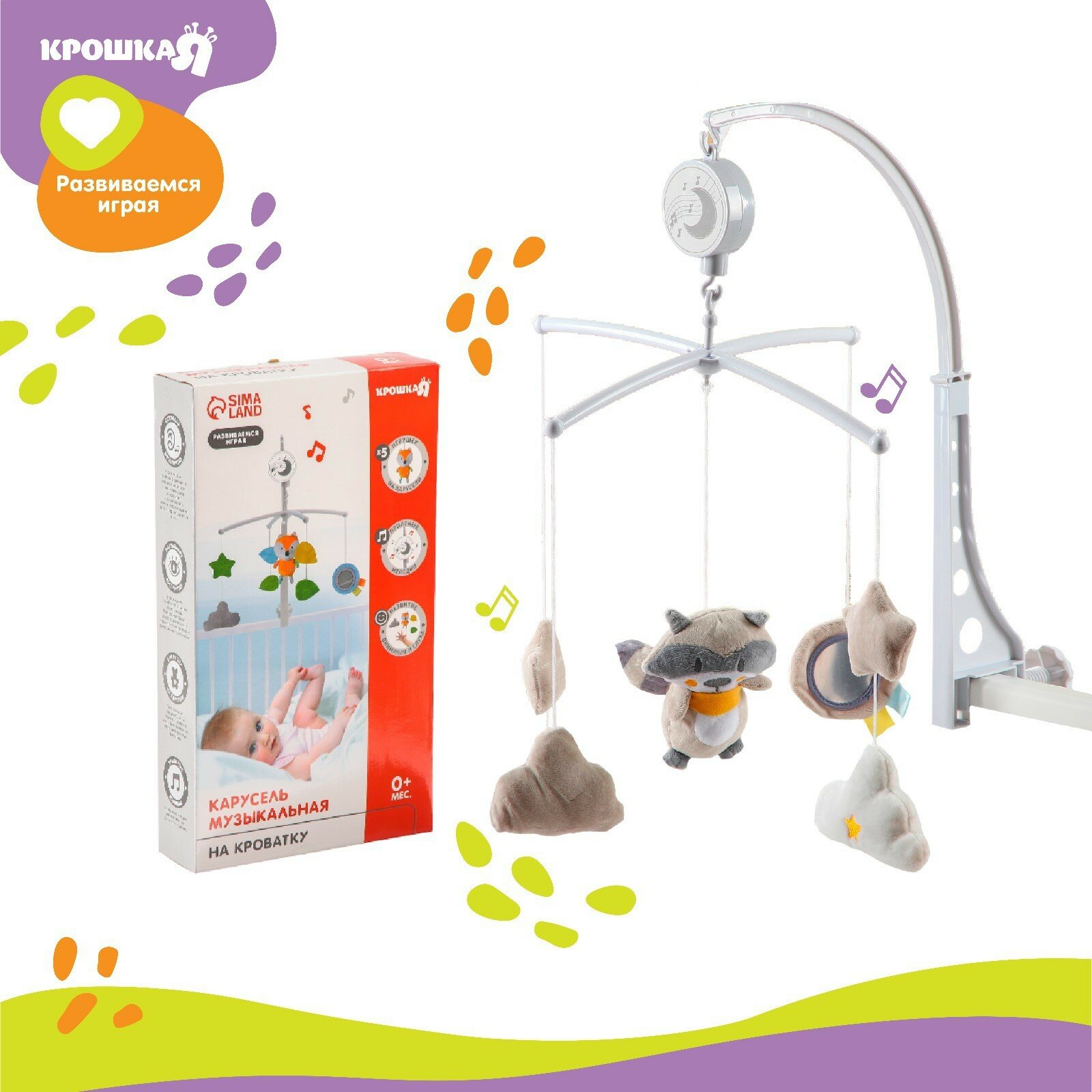Купить Мобиль музыкальный «Енотик», заводной, мягкие игрушки, 7546870