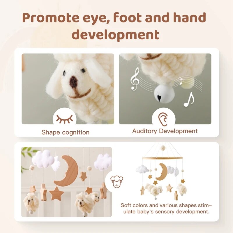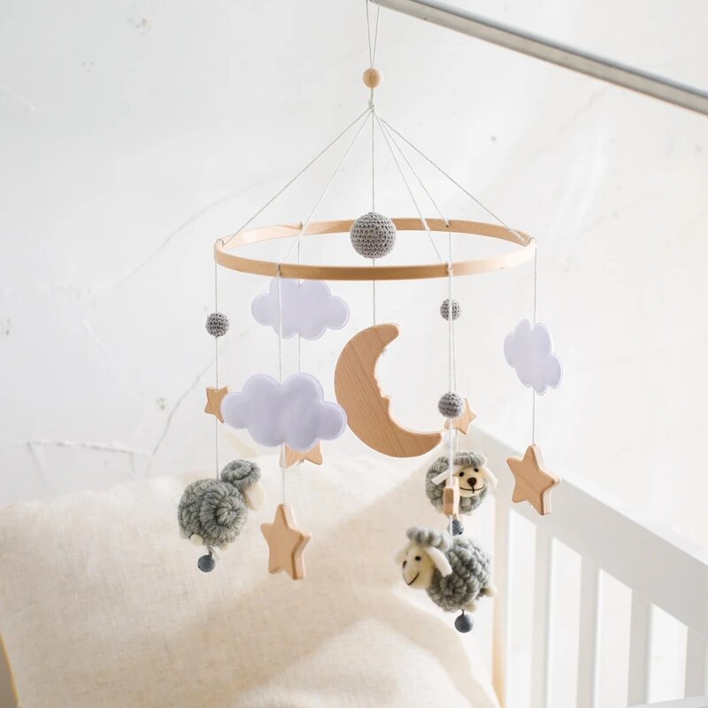 Купить Деревянная погремушка-мобиль для новорожденных, Sheep White