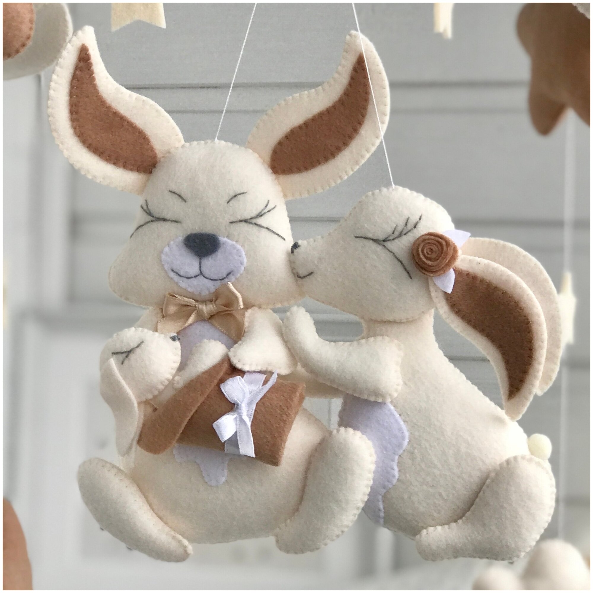 Мобиль на кроватку из фетра "Заюшки" AstiBaby Бежевый интересное: