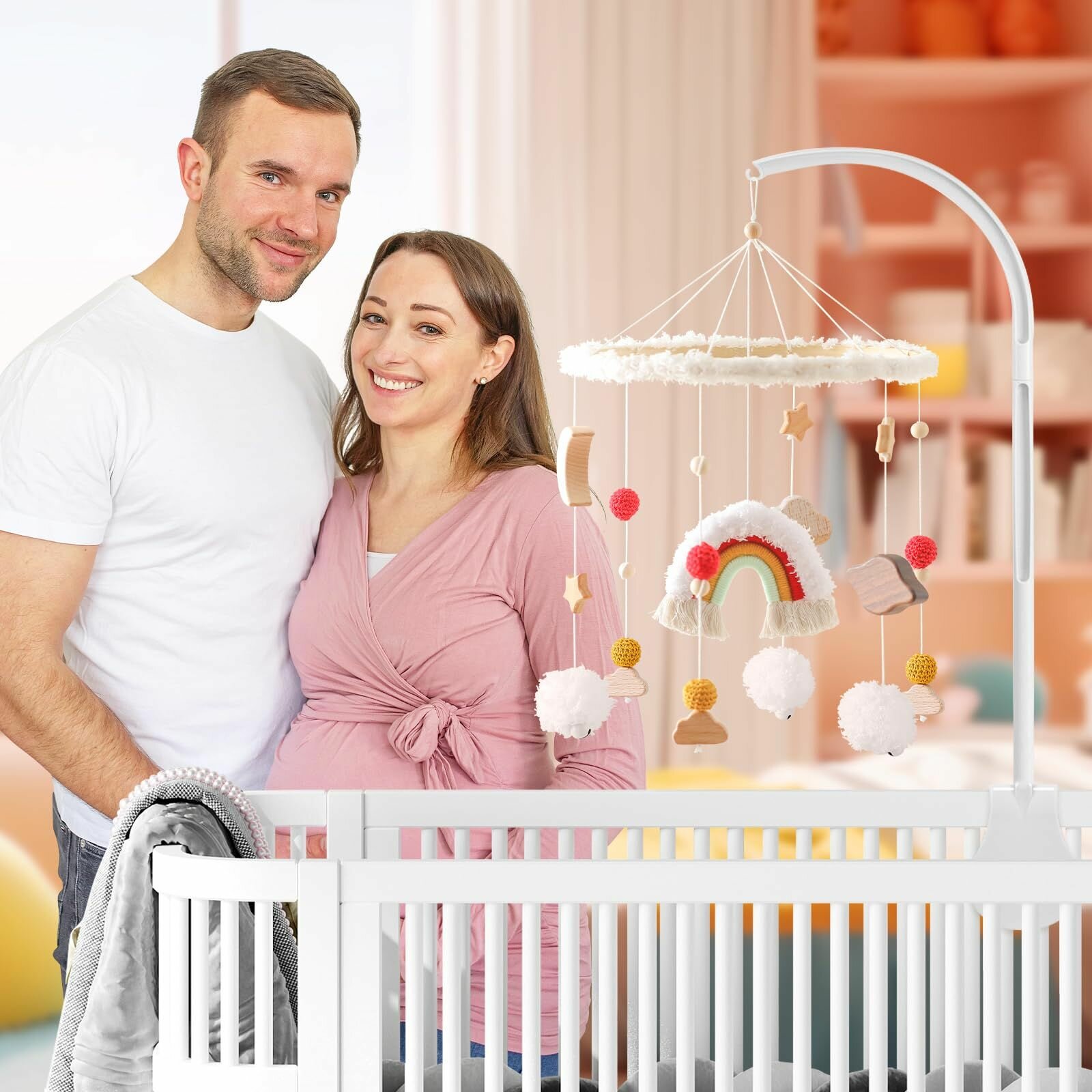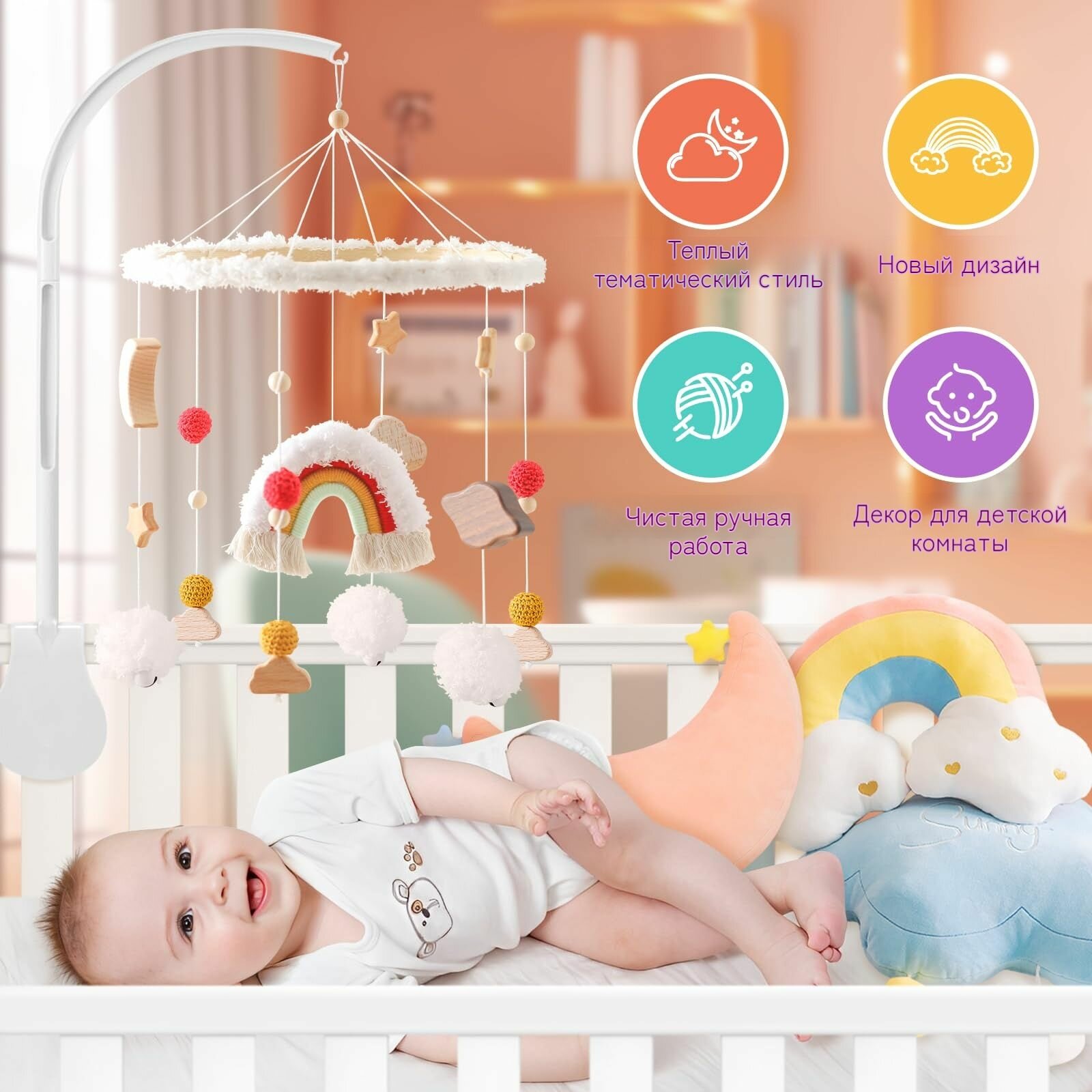 Радужный кроватный мобиль с деревянной поддержкой - для малыша интересное: