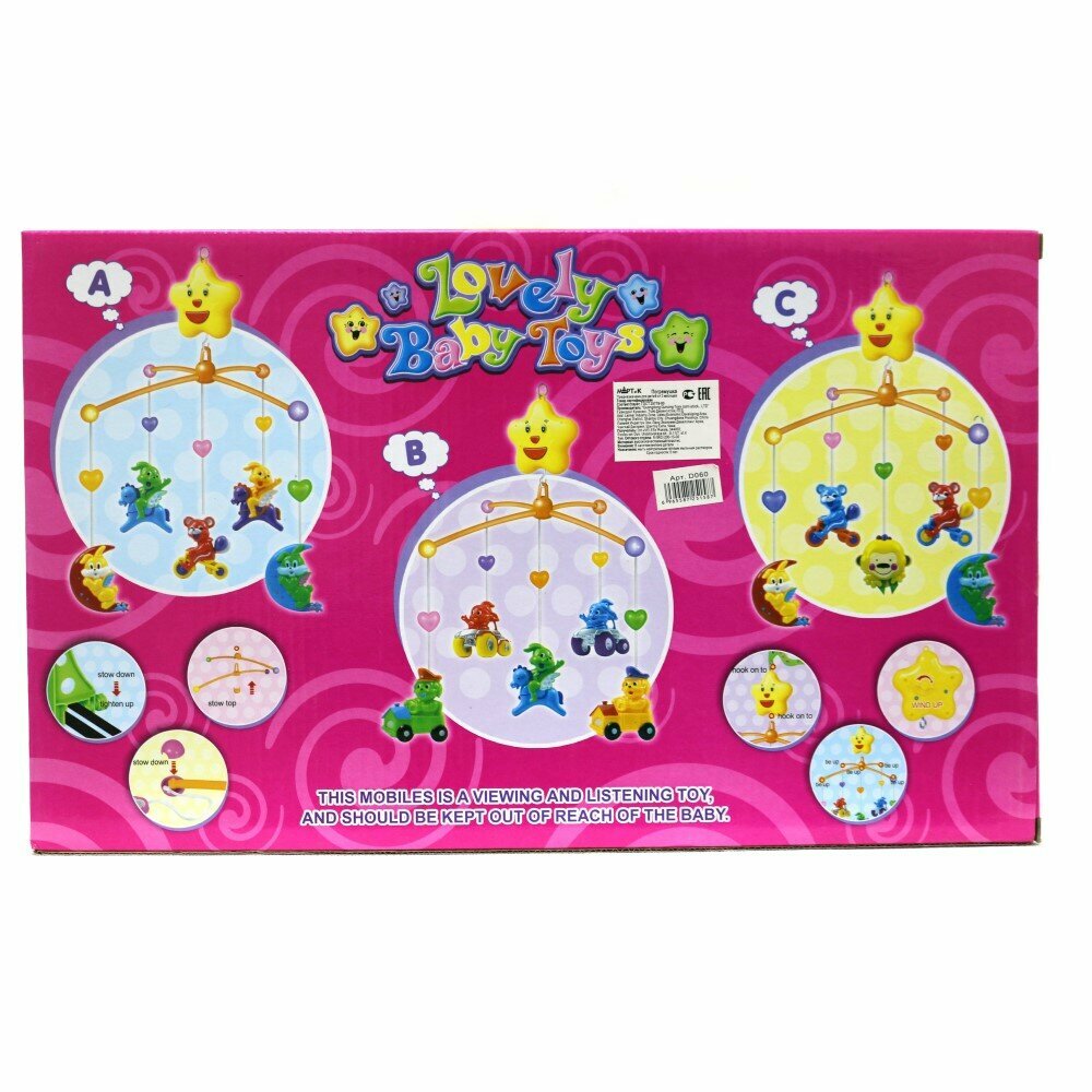 Мобиль на кровать музыкальная "Веселые зверята" с заводным механизмом в ассортименте D060 интересное:
