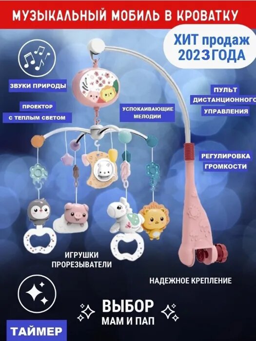 Купить Музыкальный Мобиль на кроватку тотоша с пультом управления и проектором
