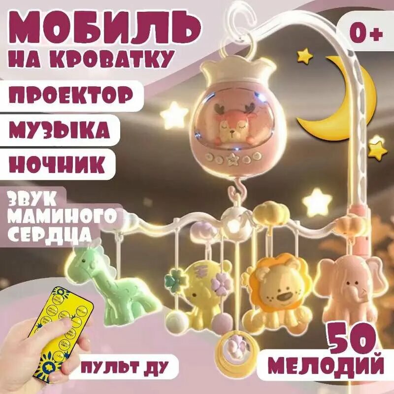 Музыкальный мобиль, Baby для новорожденных, с проектором, ночник, таймер, вращение интересное: