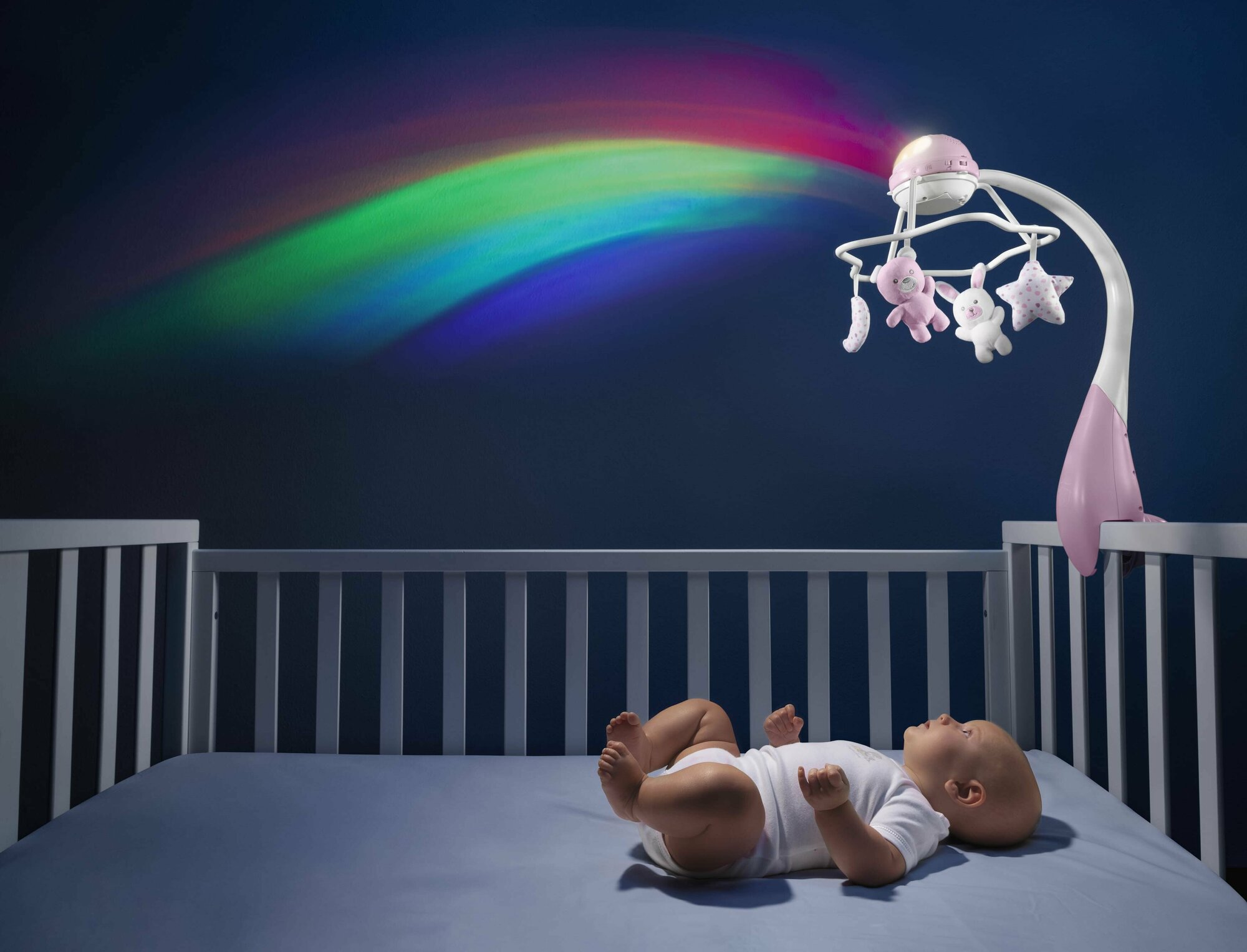 Игрушка мобиль на кроватку для новорожденных "Радуга" розовая интересное: