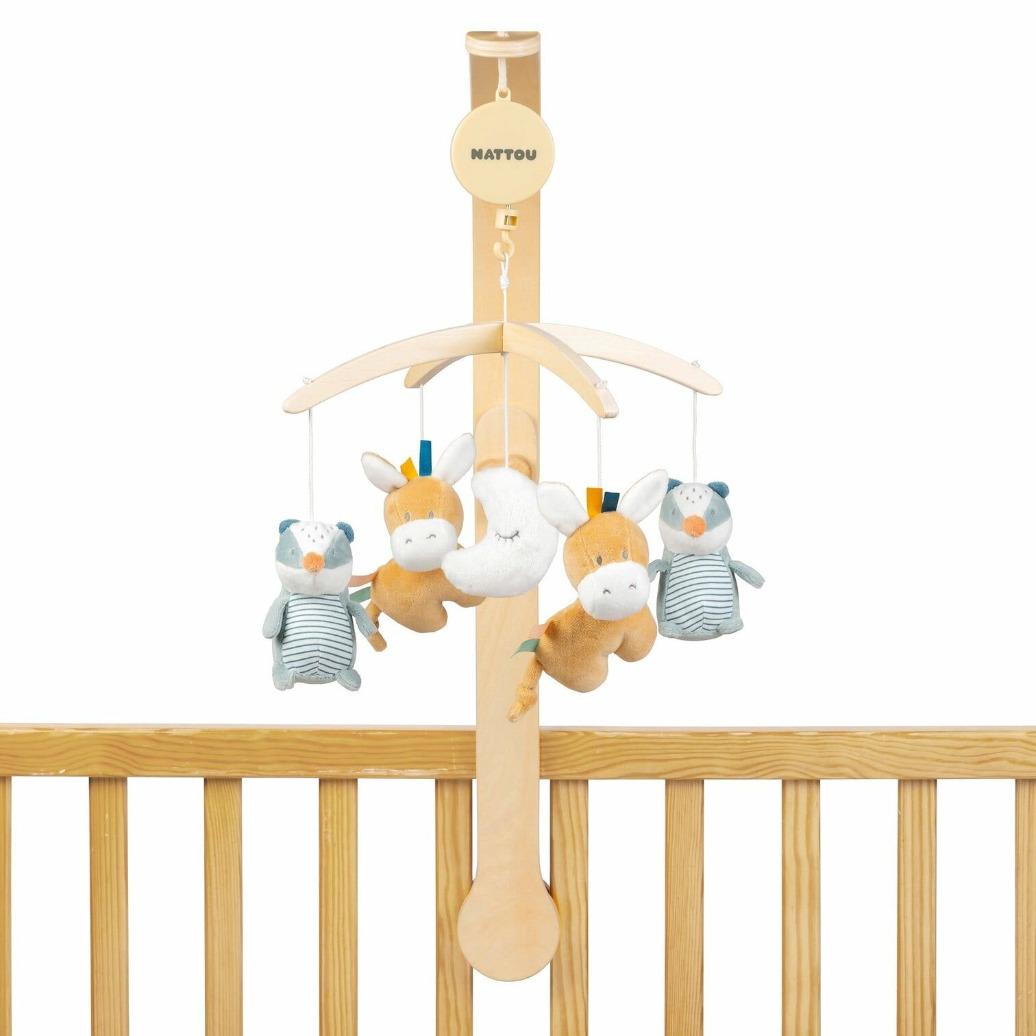Мобиль Nattou FELIX & LEO Барсук и Ослик с деревянным держателем 595162 интересное: