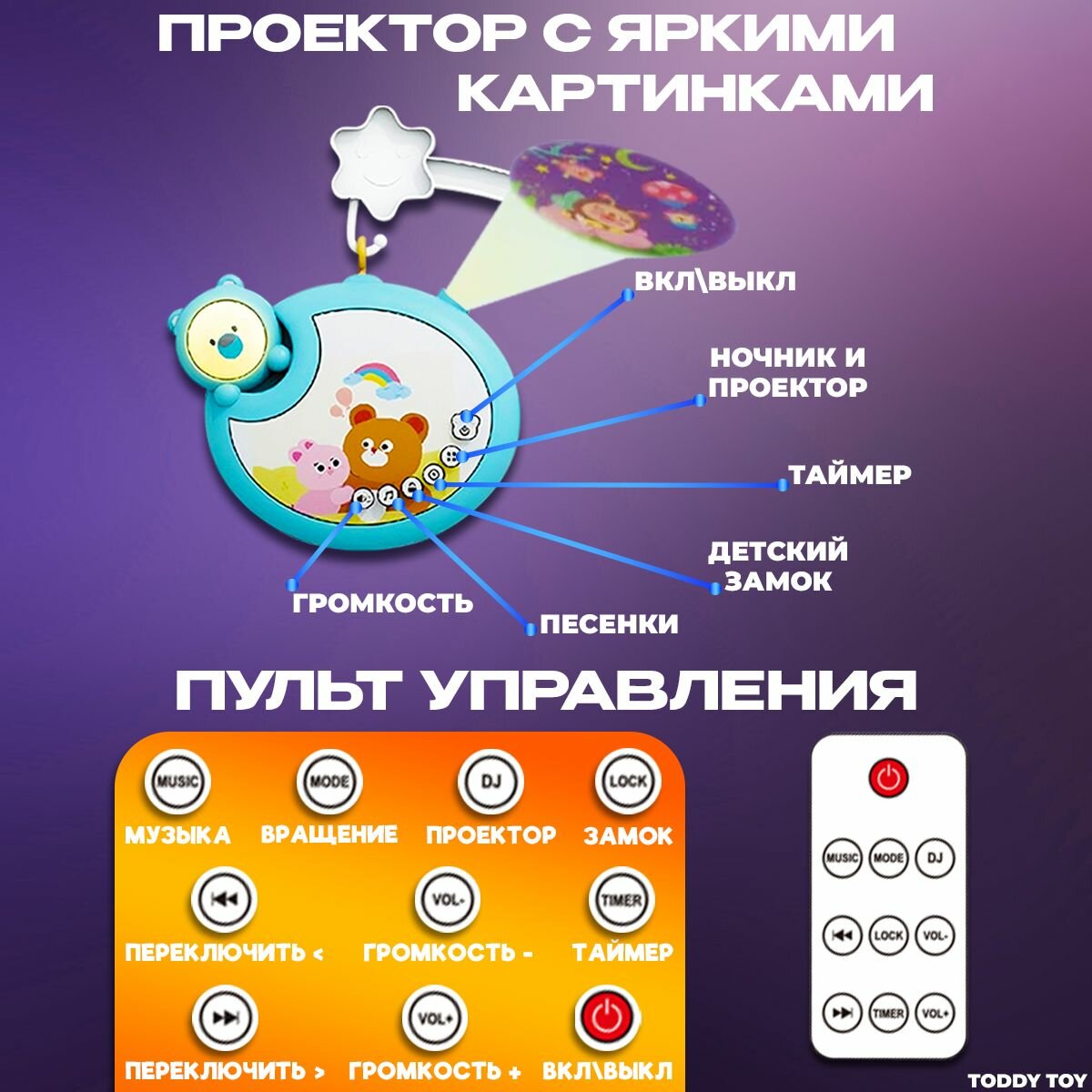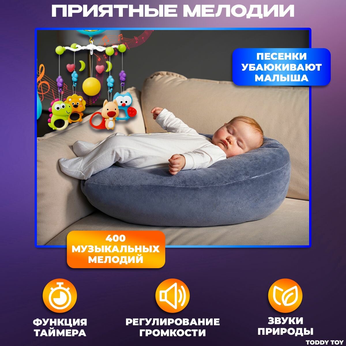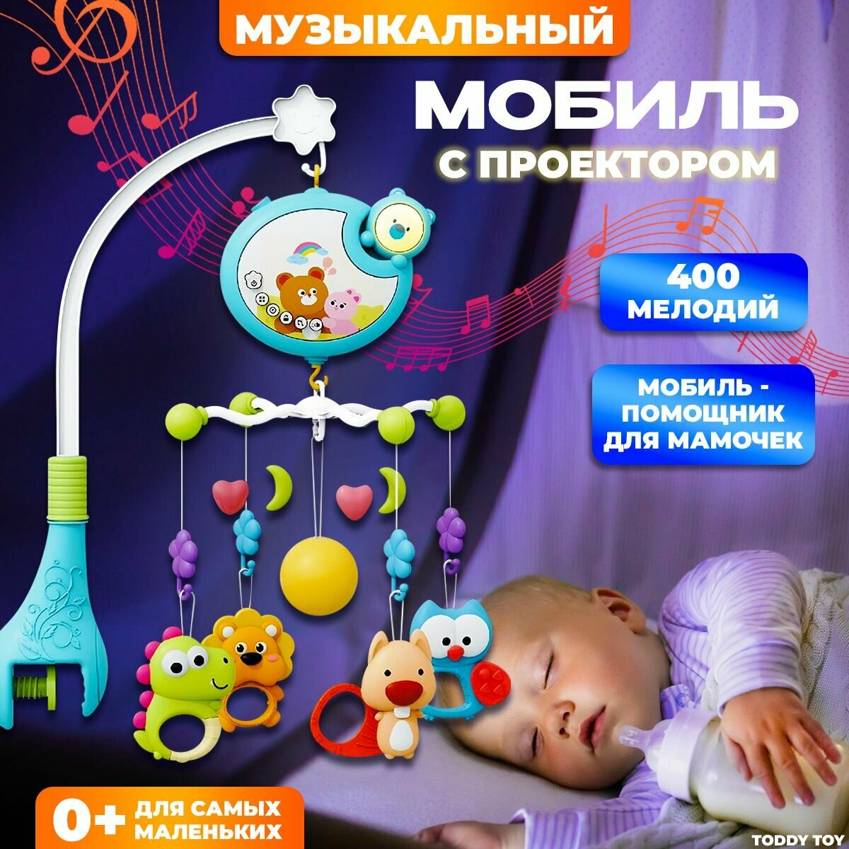 Купить Мобиль в кроватку музыкальный для новорожденных 0+-2