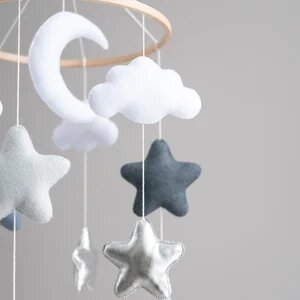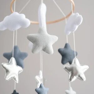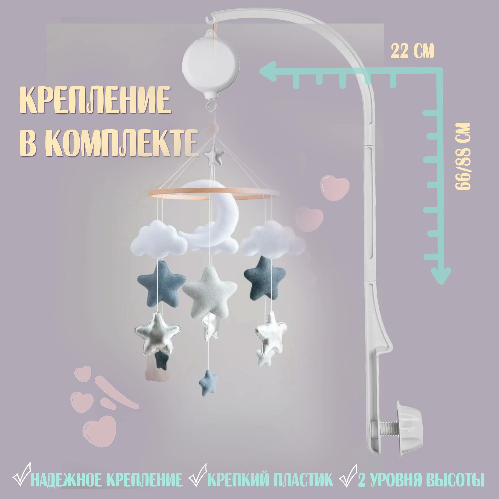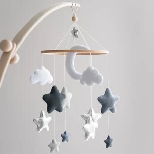 Мобиль FetroToys "Луна и Звезды", ручная работа, нейтральные цвета - для маленьких девочек и мальчиков интересное: