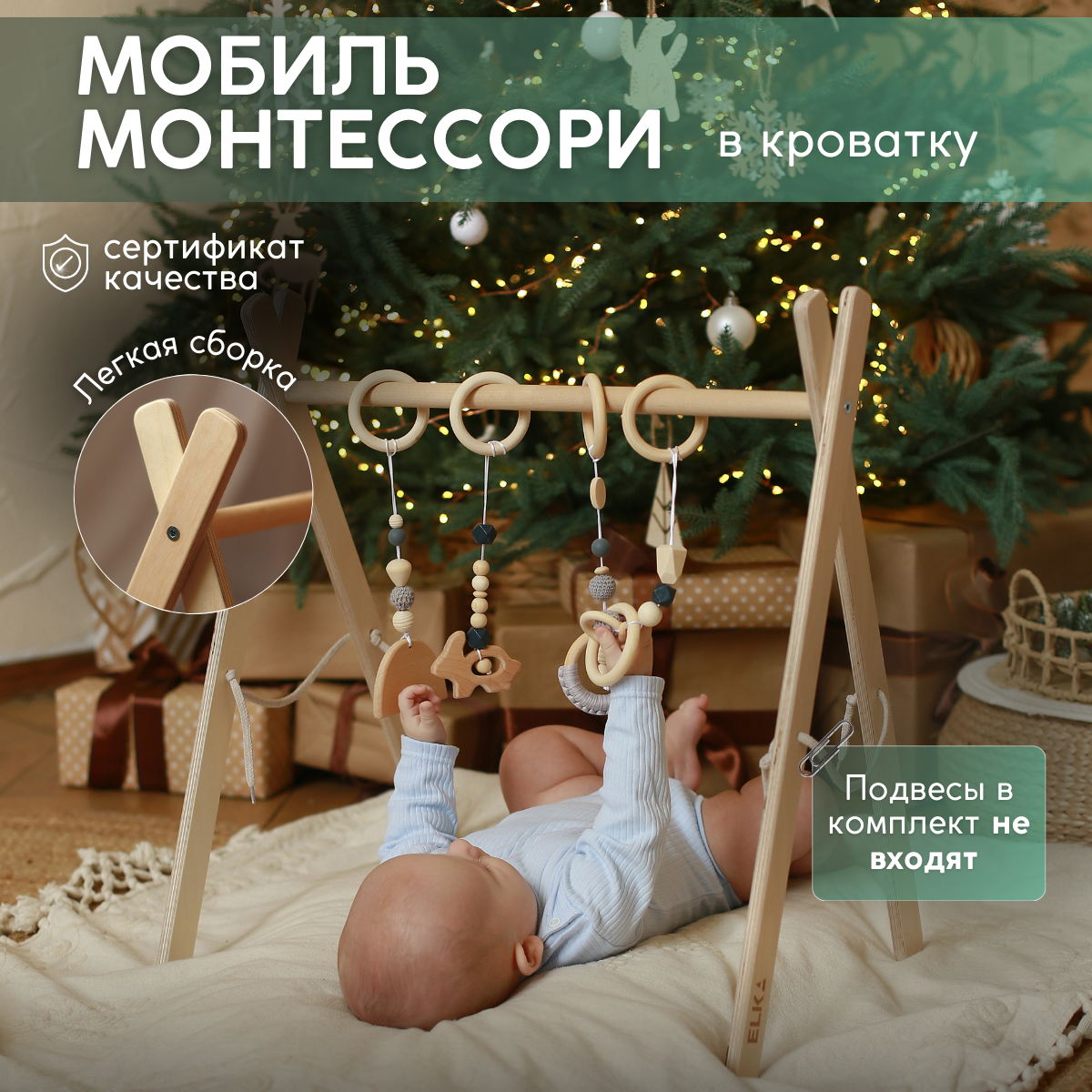 Мобиль в кроватку ELKA Lab светло-бежевый интересное: