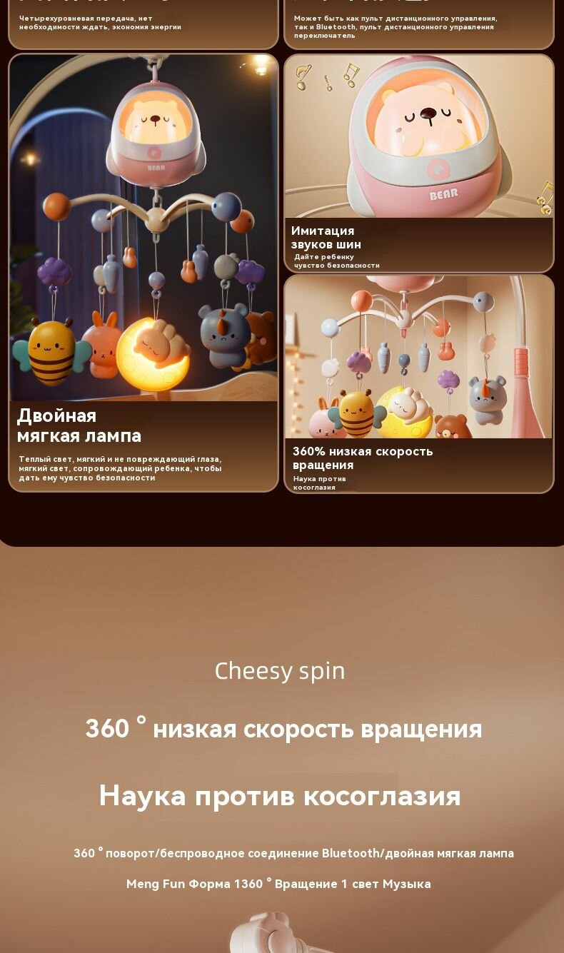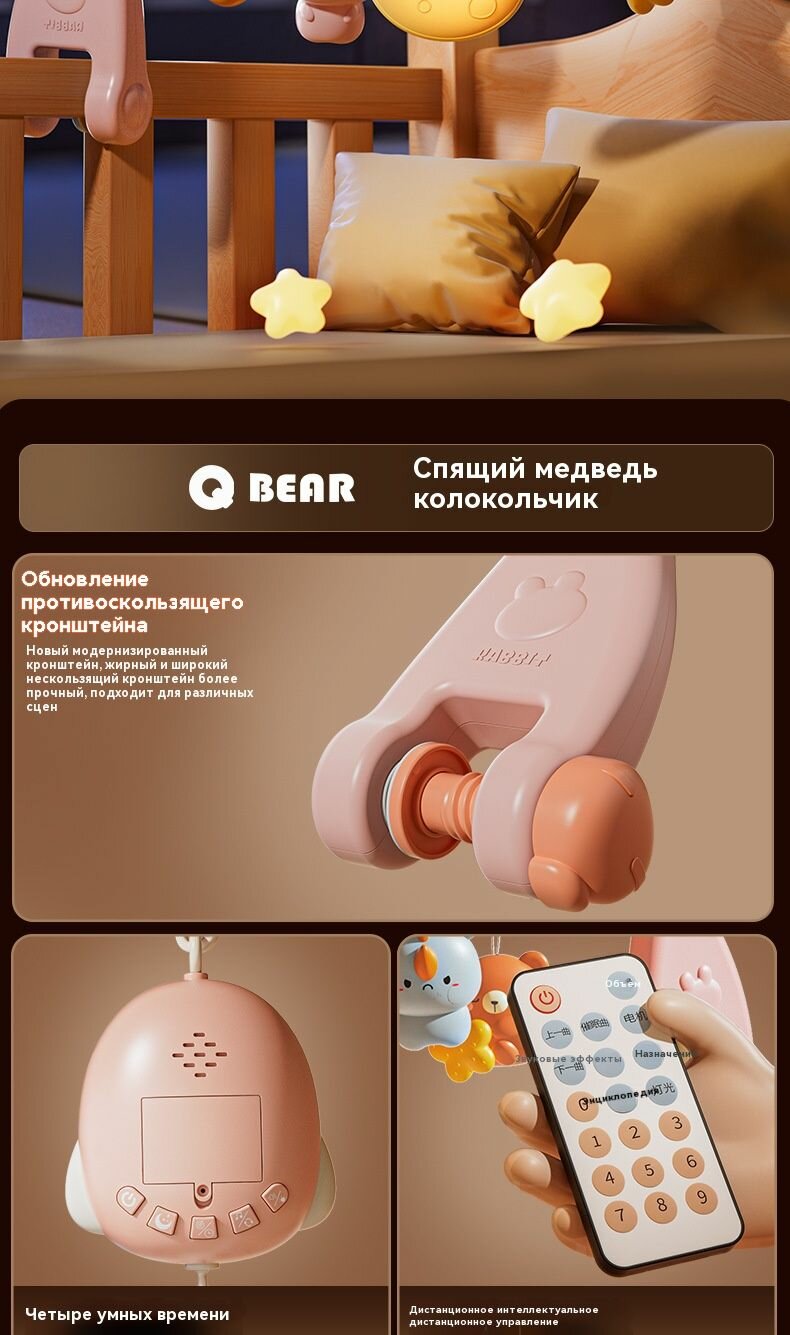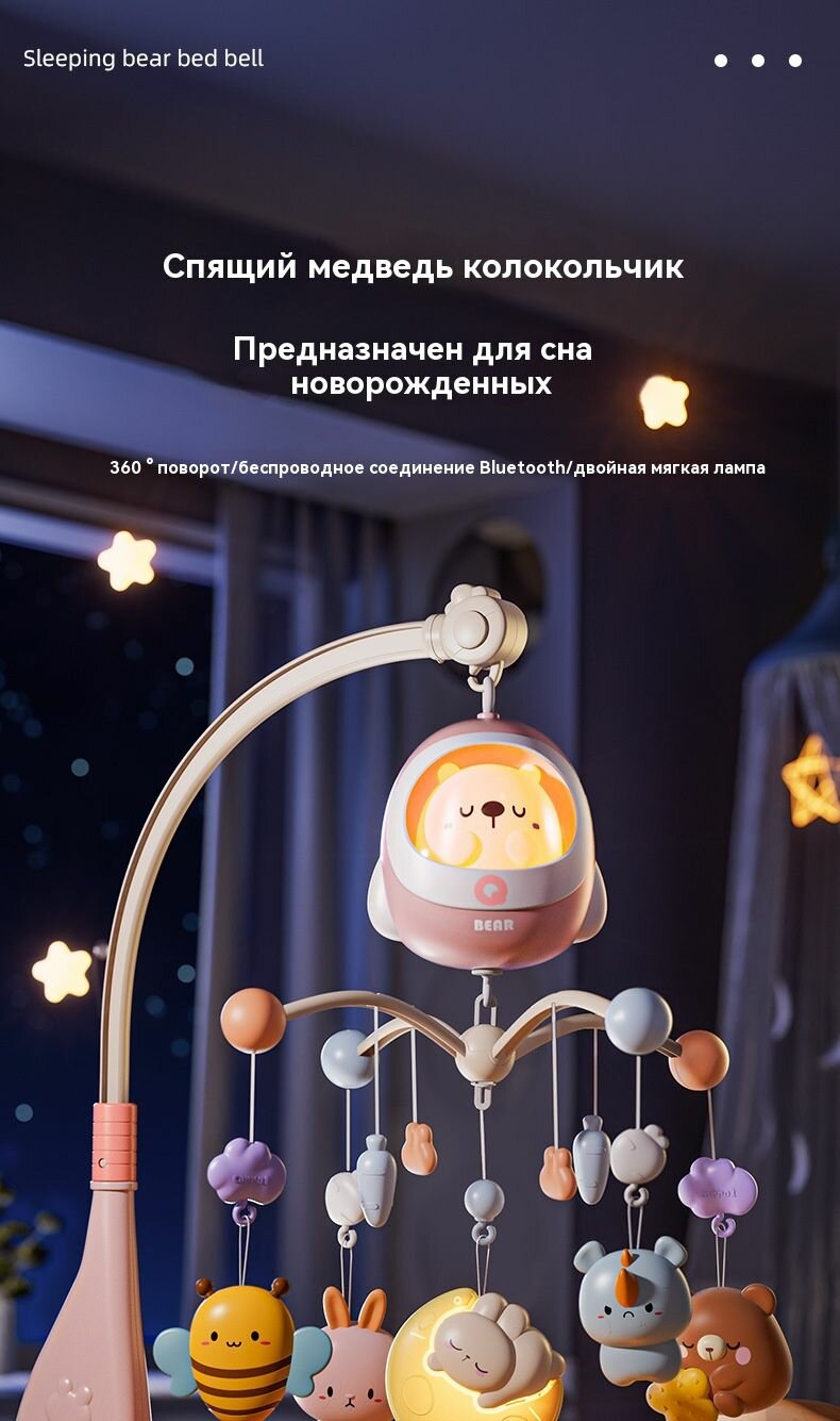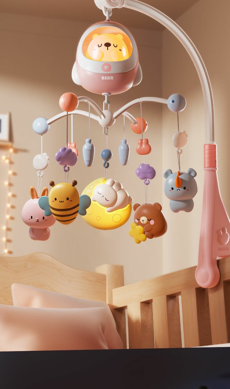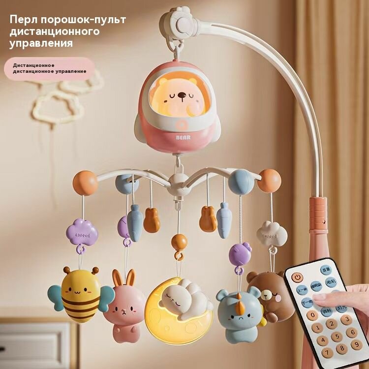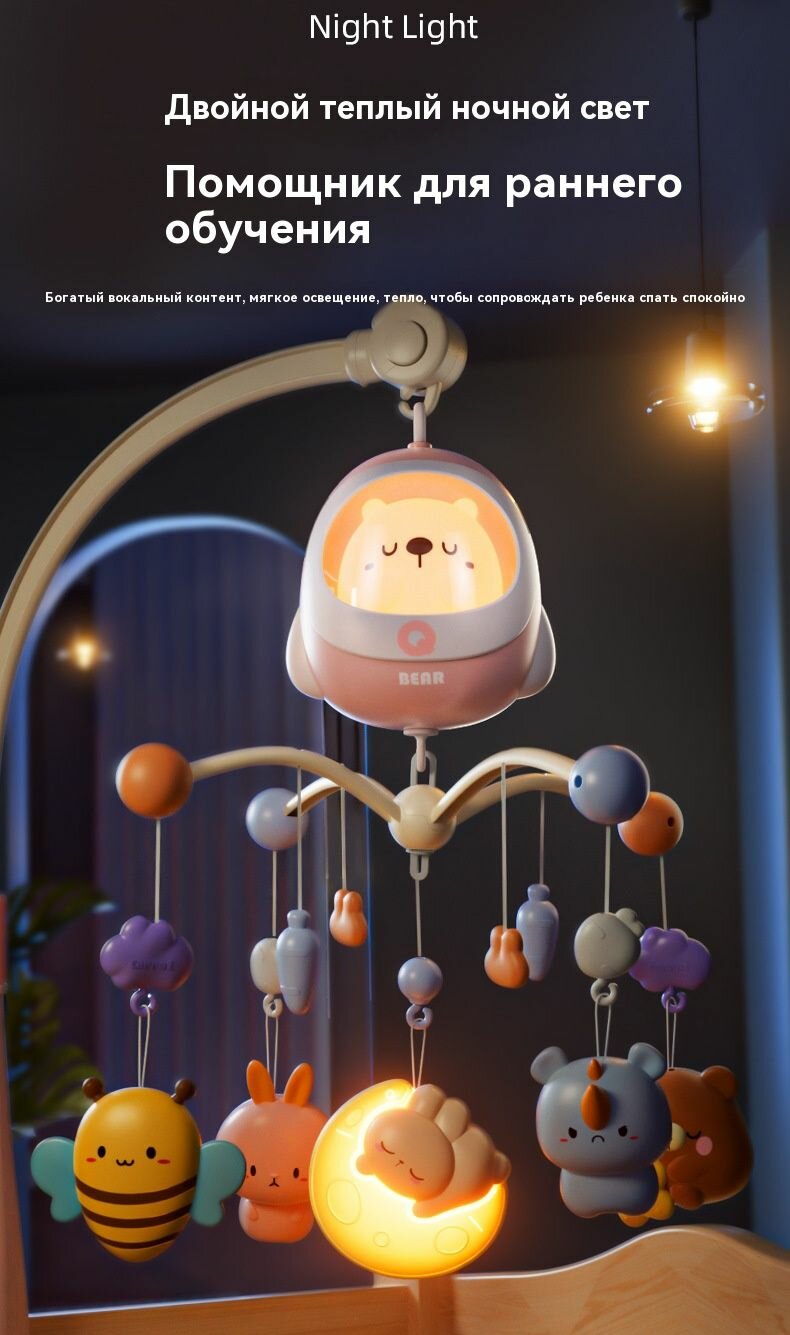 Мобиль на кроватку для новорожденных с вращающимися игрушками - музыкальный карусель для малышей (автономная работа интересное: