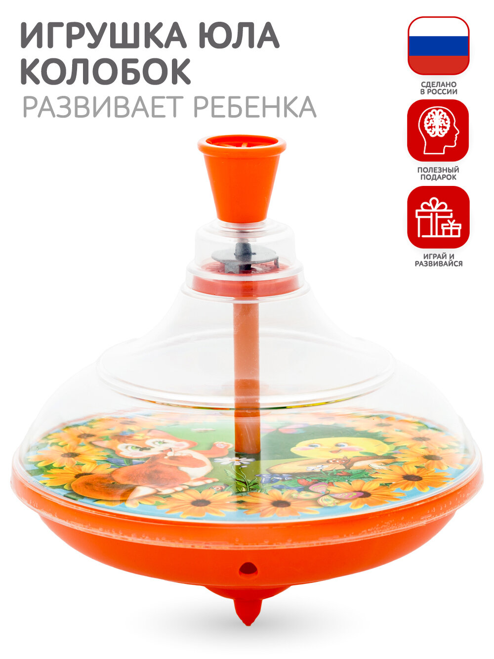 Юла игрушка для малышей Колобок, диаметр 15см, ручная прозрачная интересное: