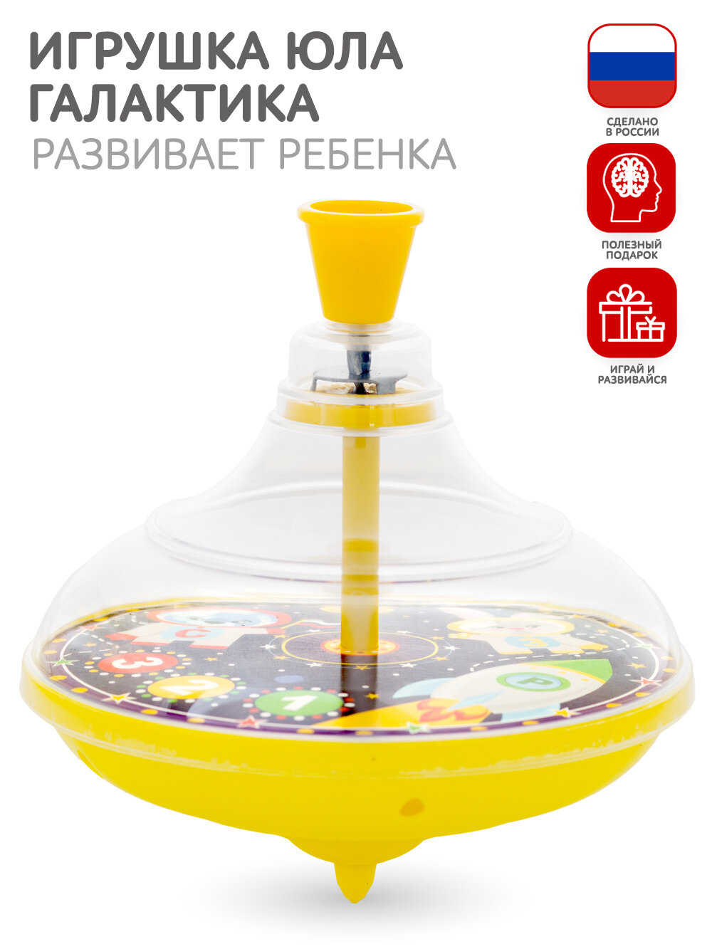 Купить Юла игрушка для малышей Космос, диаметр 15см, ручная прозрачная