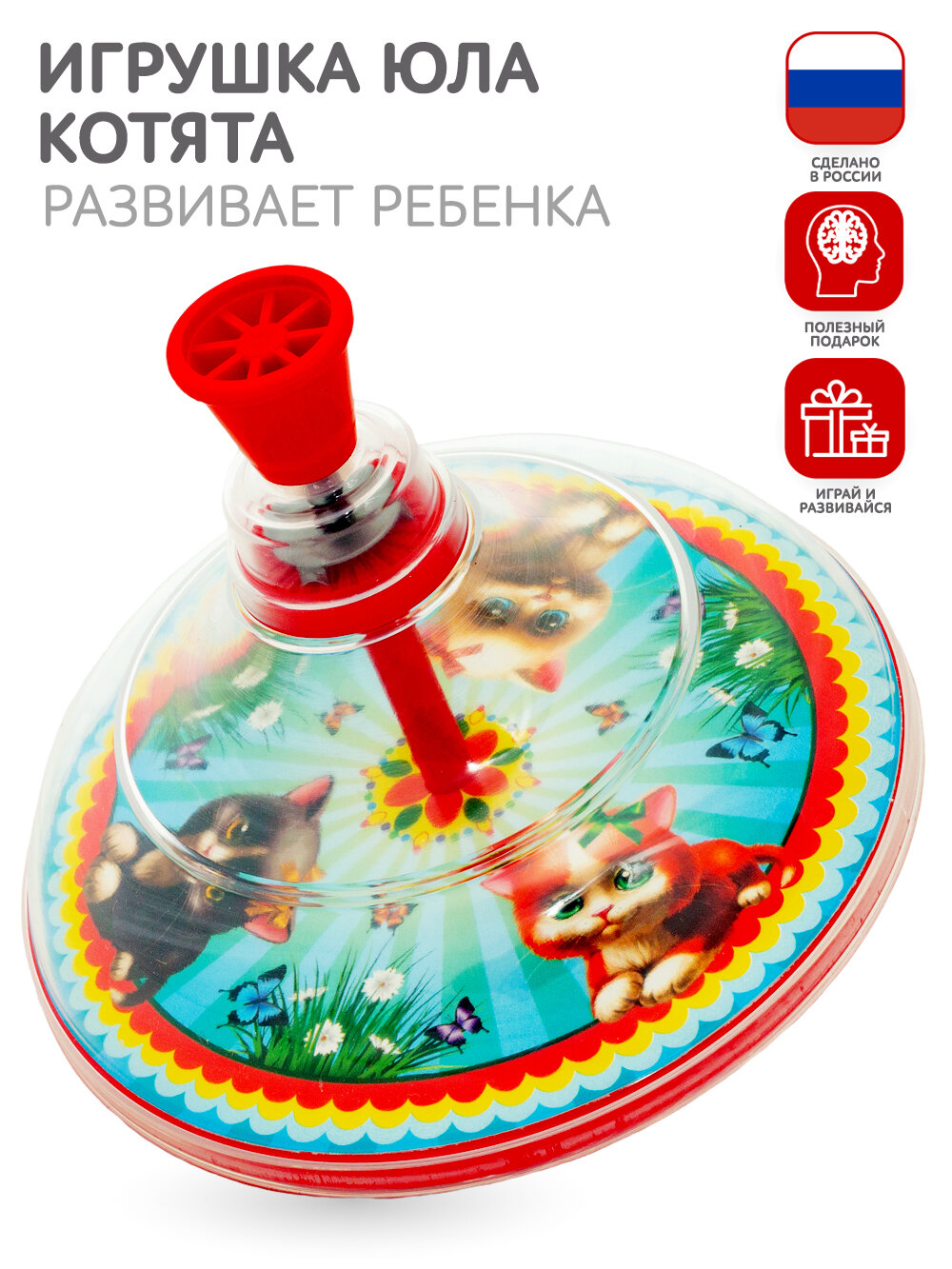 Юла игрушка для малышей Котята, диаметр 15см, ручная прозрачная интересное: