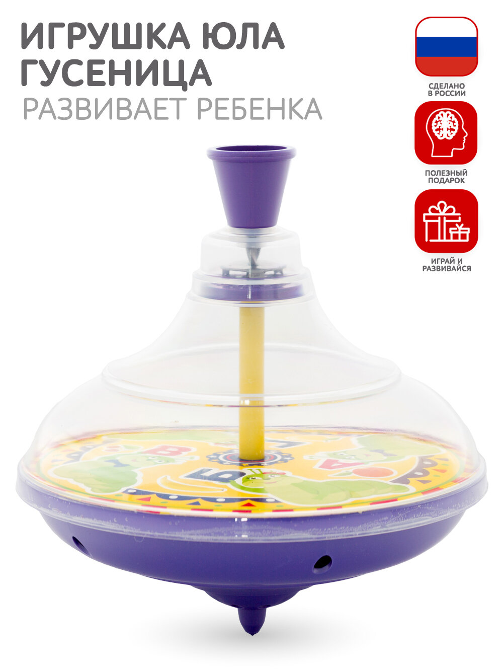 Юла игрушка для малышей Гусеница, диаметр 15см, ручная прозрачная интересное: