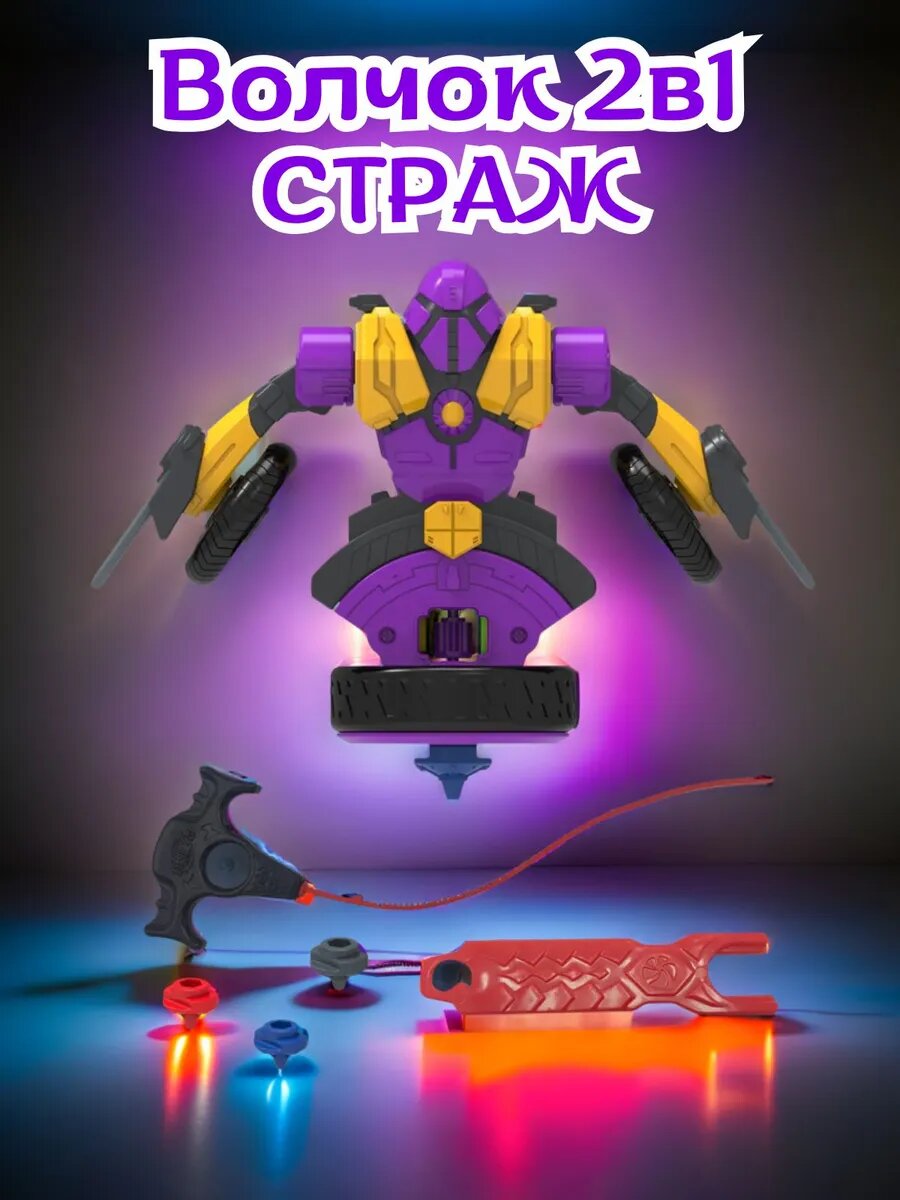Игрушка Spin Racers "Страж", волчок 2 в 1, пластик, с пускателем, фиолетово-желто-черная интересное: