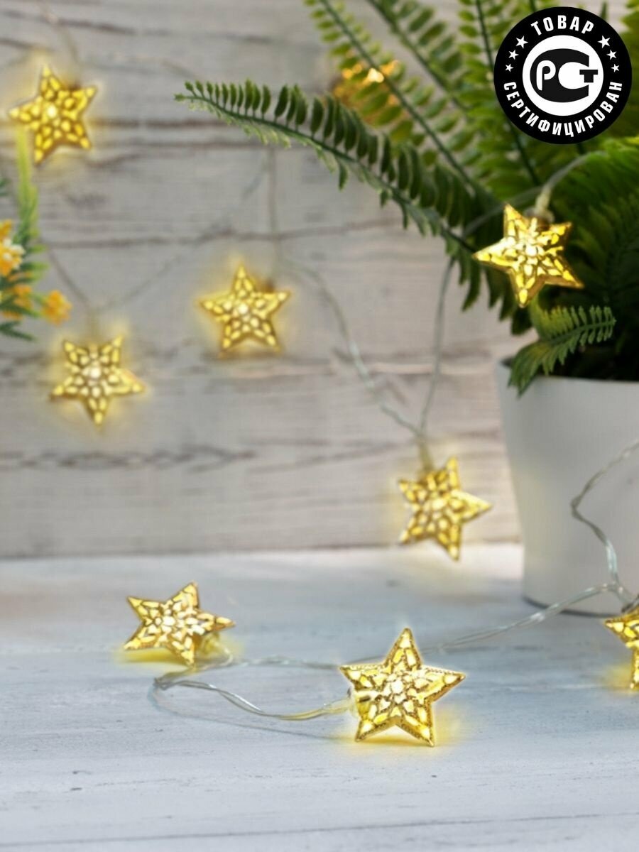Гирлянда светодиодная на солнечной батарее "Звезды" 12 LED теплый белый 1,2 метра