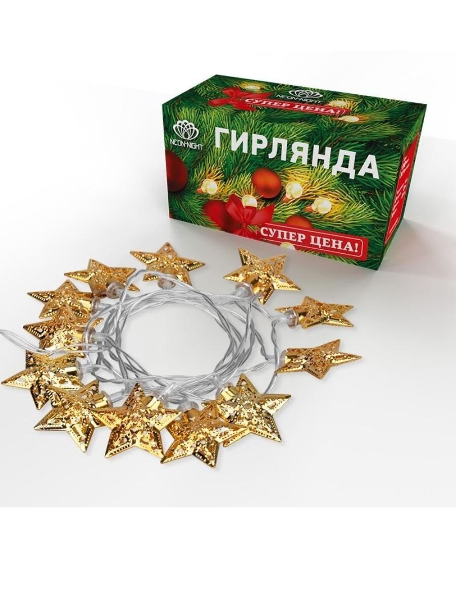 Гирлянда нить LED NEON-NIGHT Звезды теплый белый 1,2 м 303-070