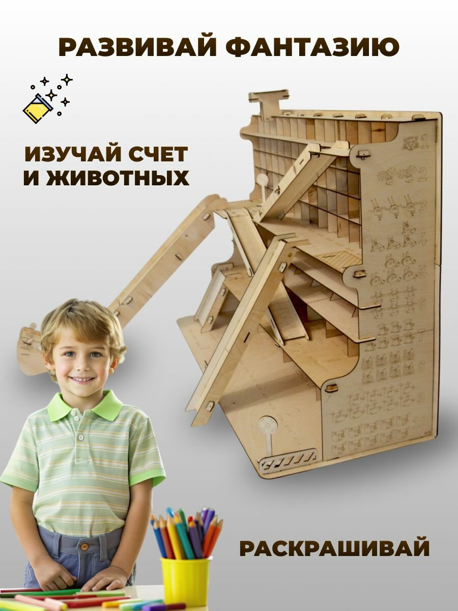 Деревянная парковка Гараж для машинок XXXL полка для игрушек подарок на день рождения ребенку