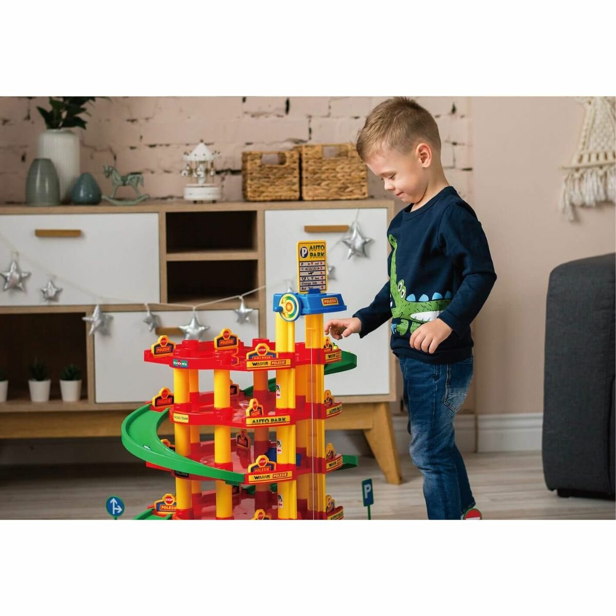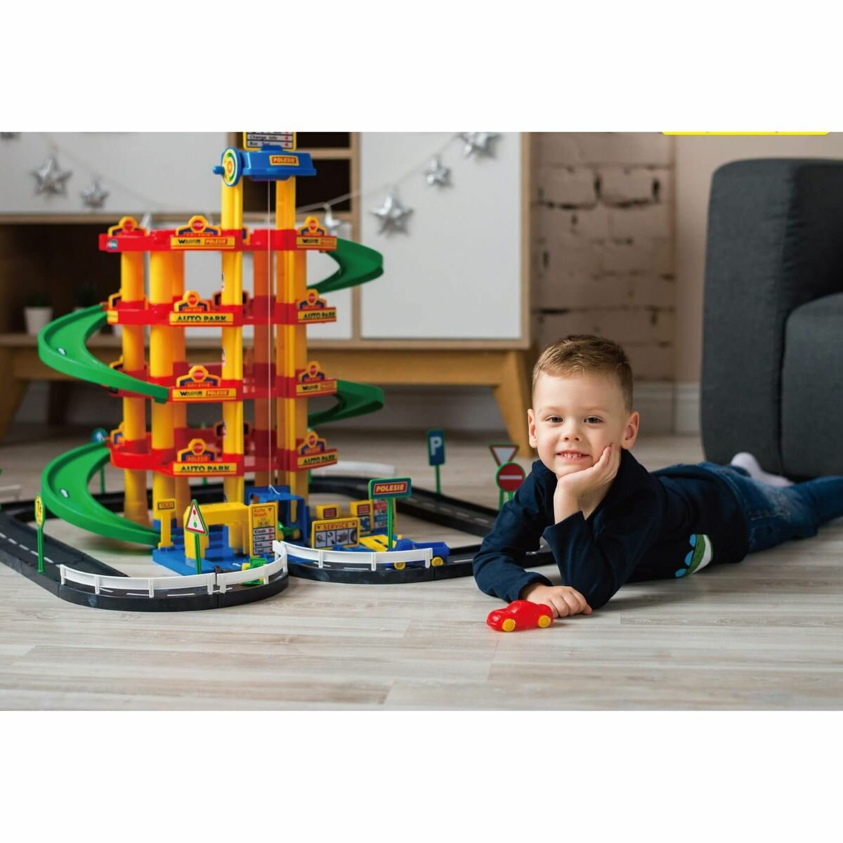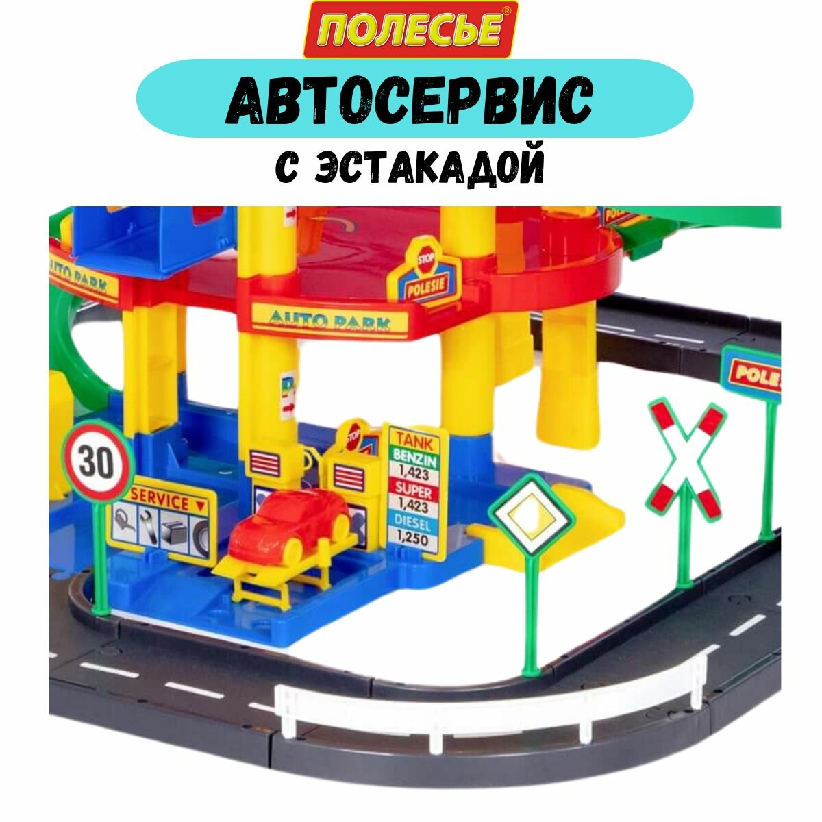 Паркинг 5-уровневый с дорогой автомойка игрушечная автотрек "Полесье" интересное: